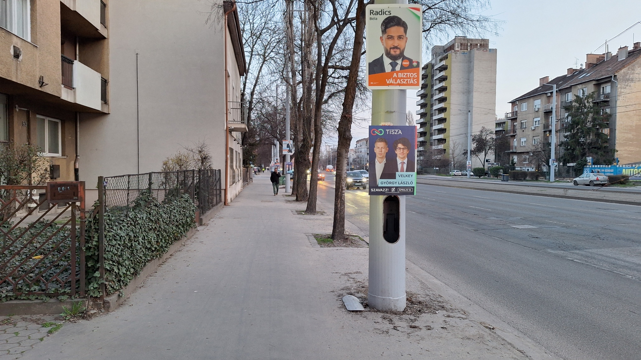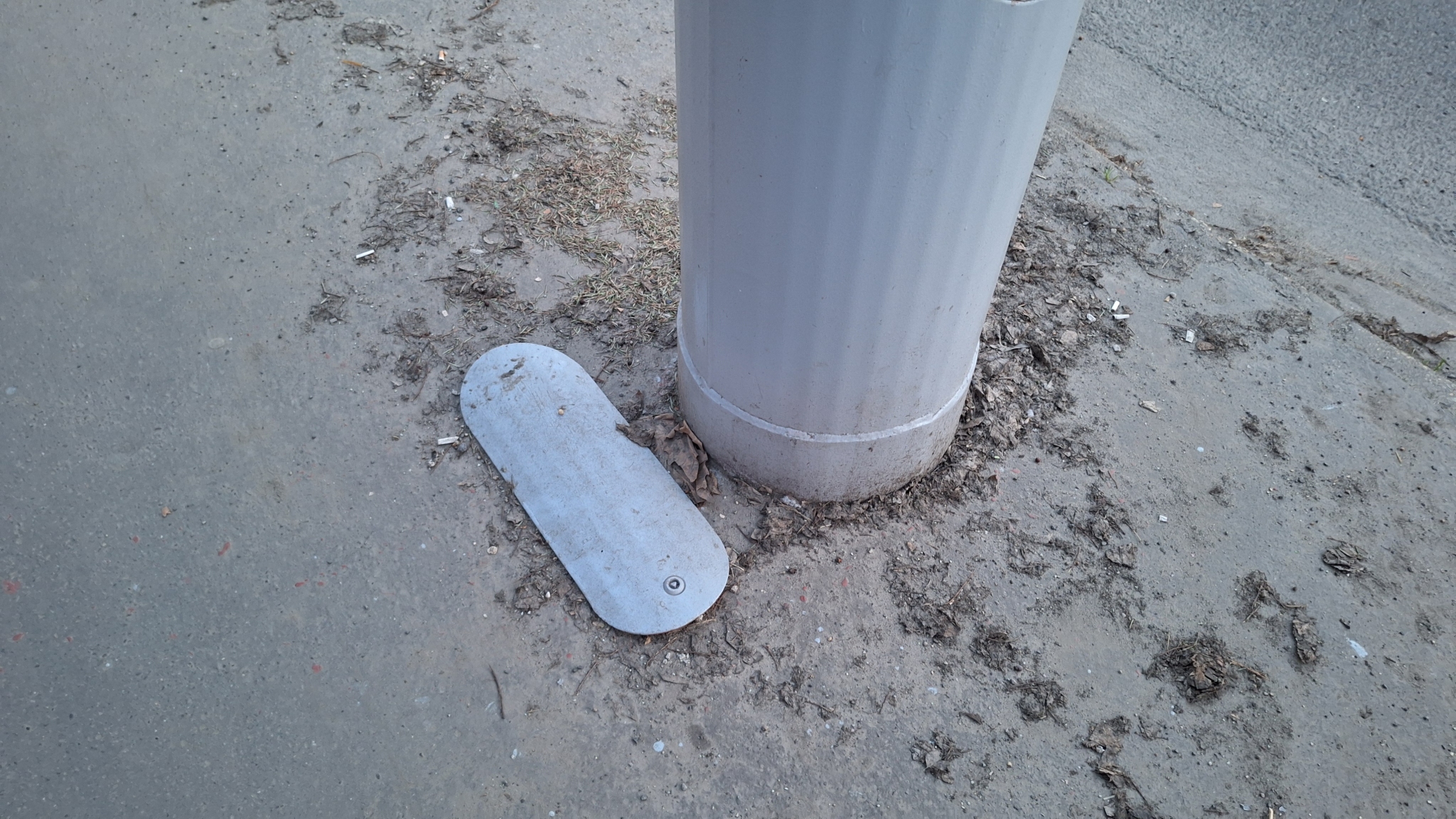 A Hungária körút 63. előtti lámpaoszlopnak leesett a fedele.