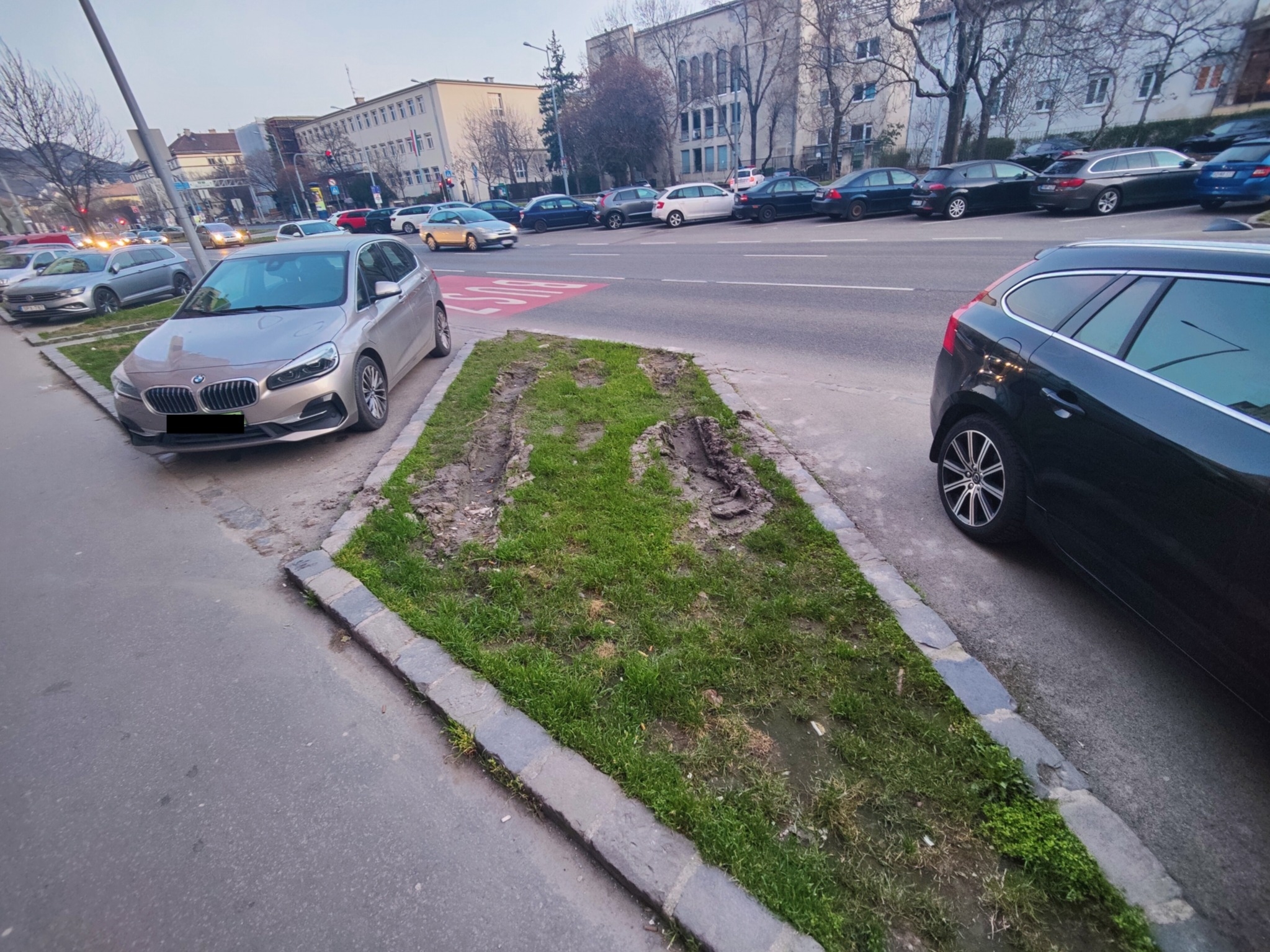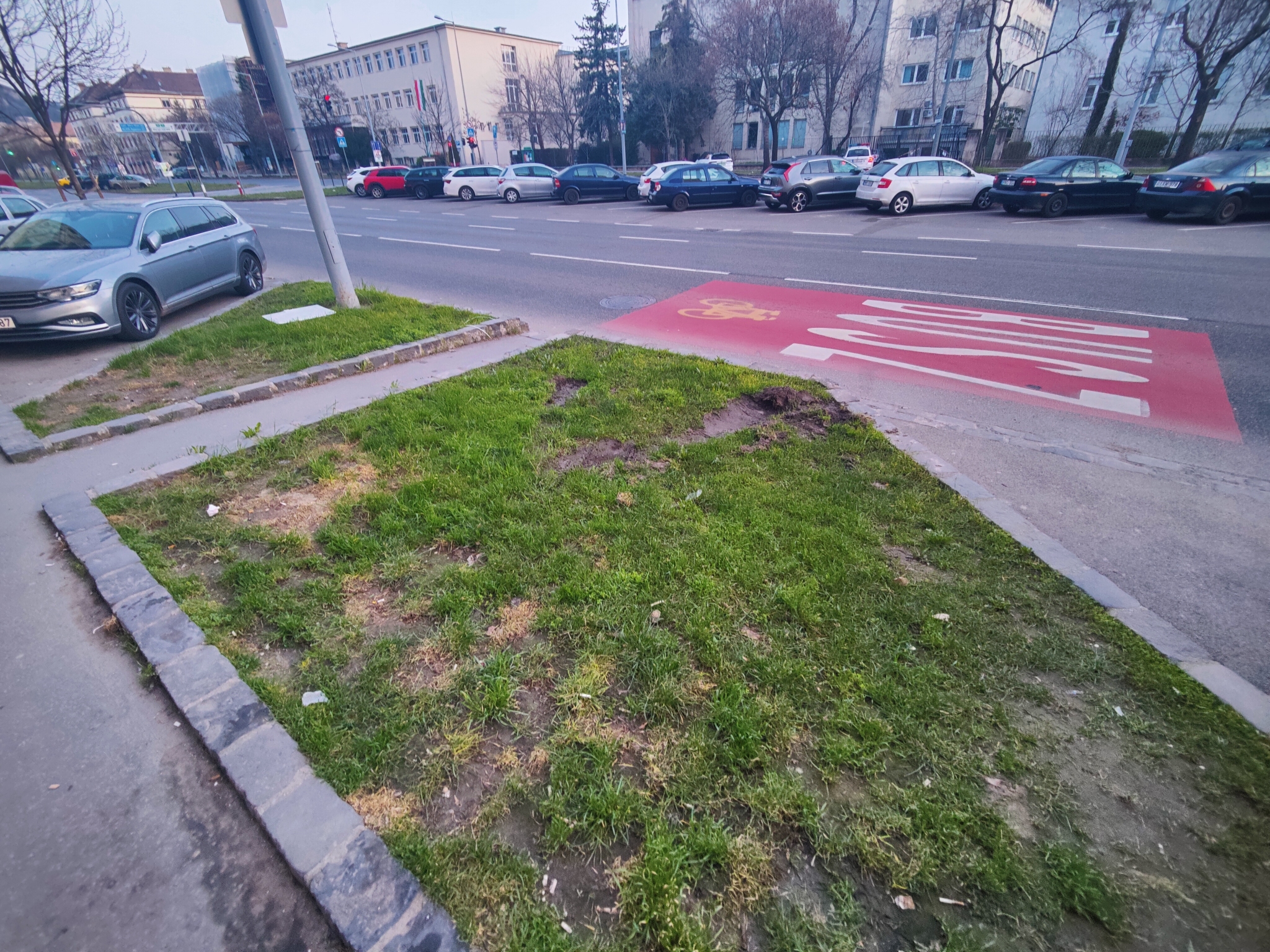 Hiányzik innen a parkolásgátló korlátok a zöld felületekről, a Bocskai út mentén. Autósok feljárnak a fűre parkolni, így tönkretéve a fűfelületeket.