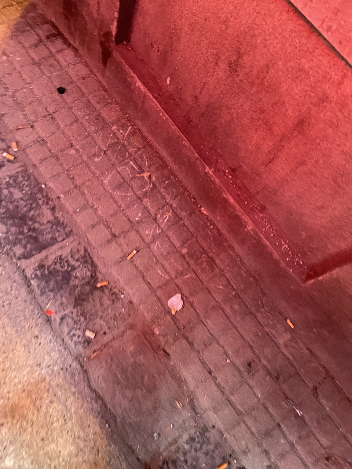 A dohánybolt és az éjjel-nappali előtt folyamatosan üres alkoholos üvegek, kávéspoharak, cigarettásdobozok, cigarettacsikkek és egyéb hasonló szétdobált szemét található, nagy mennyiségben.