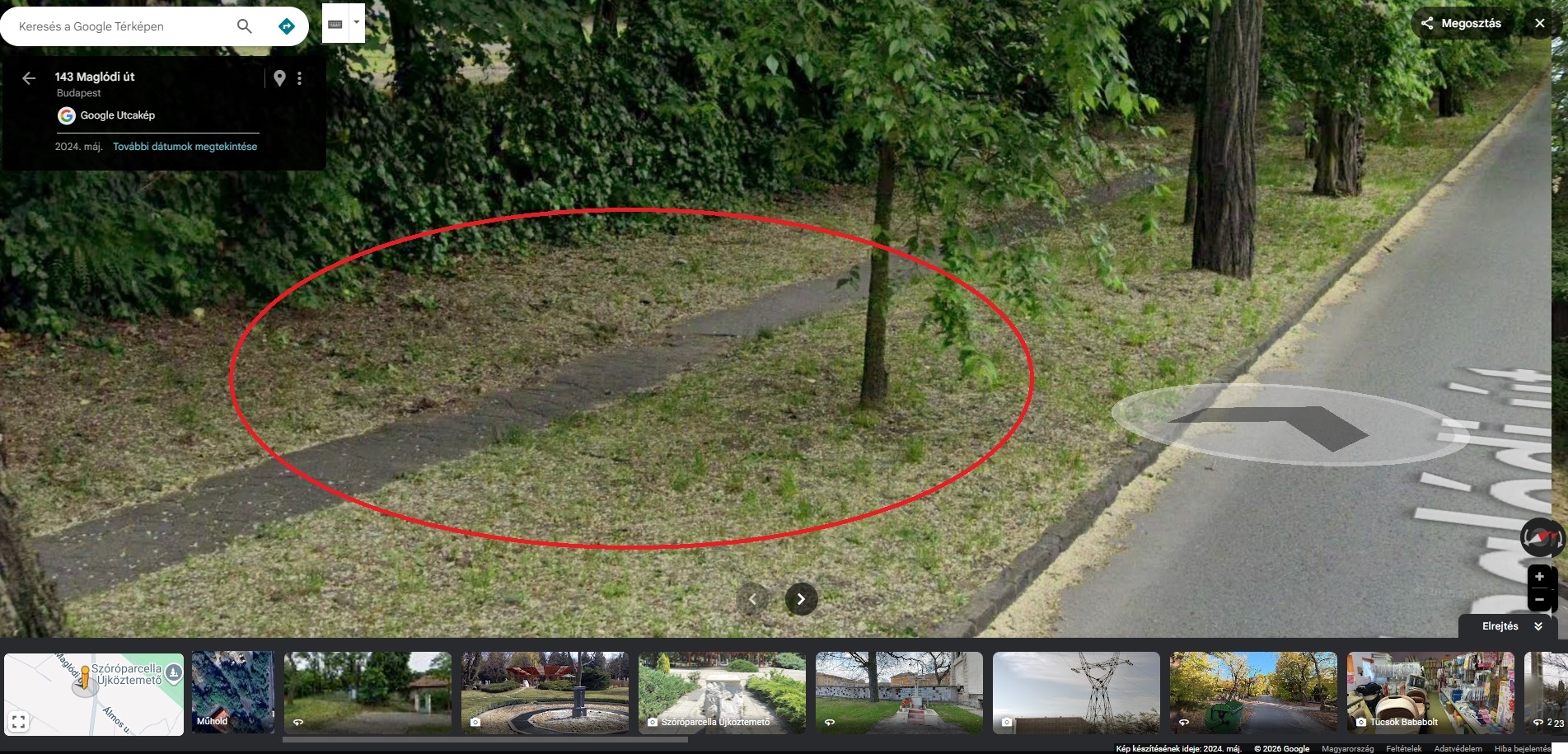 Ezen az oldalon új társasház épült, bőven van rajta gyalogos forgalom. Kérem ne csak a megjelölt pontot nézzék, hanem az egész szakaszt.