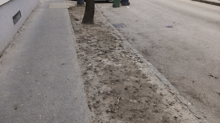 A Lovas úton lévő zöldsáv siralmas állapotban van. A föld teljesen össze van tömörödve, növény alig van benne.