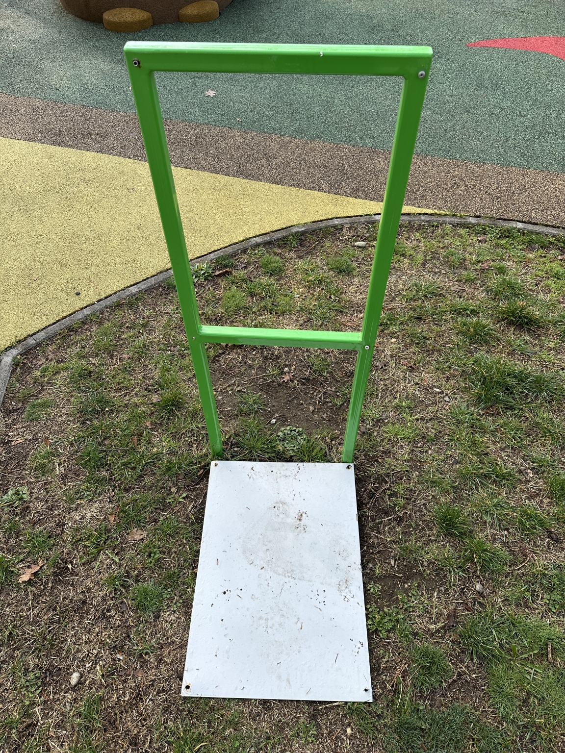 Széthullott játszótéri info tábla