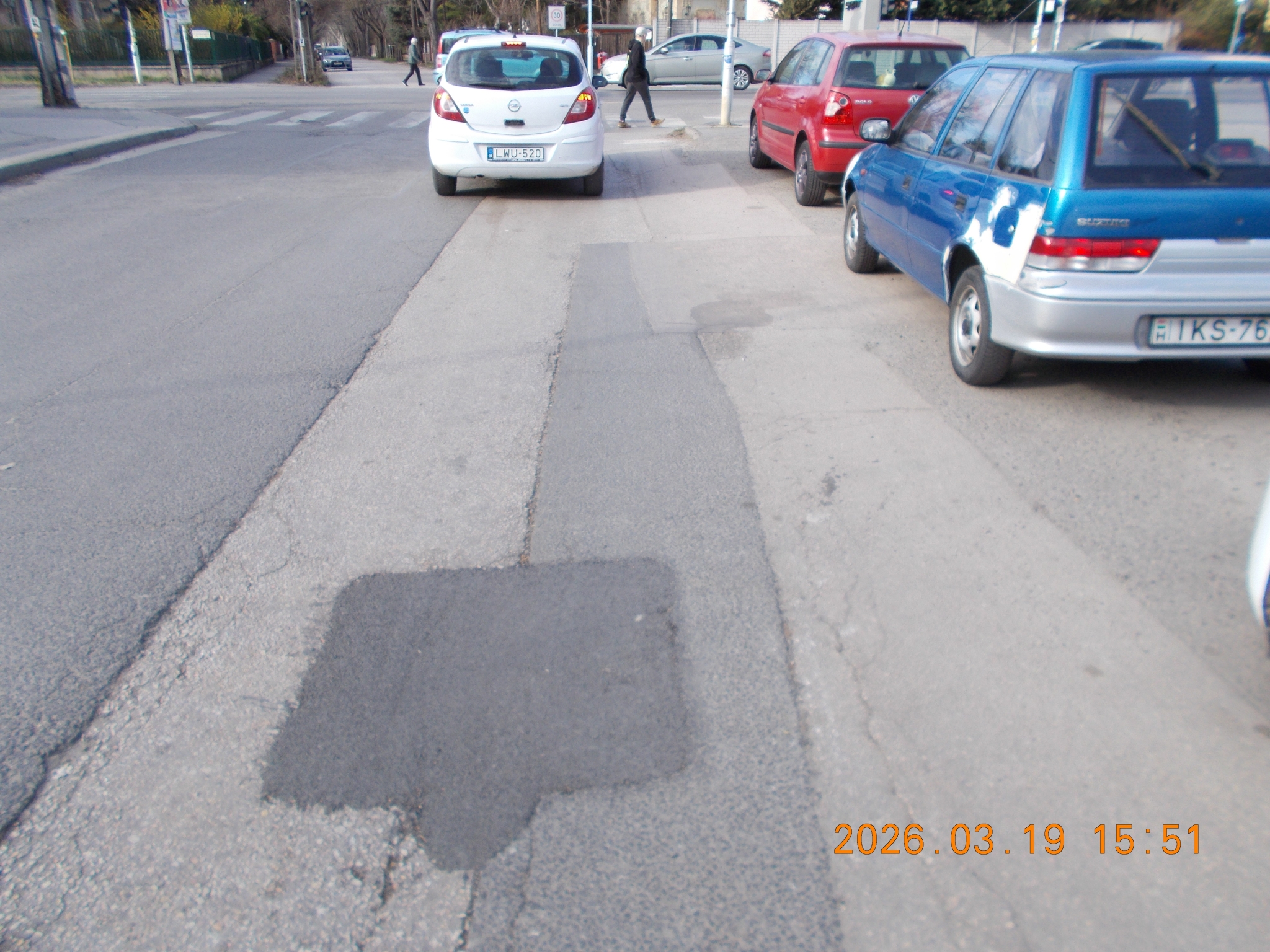 A Pilóta utcában, a cukrászda és az autókereskedés között kialakult egy hatalmas kátyú, kérem a javítását.
