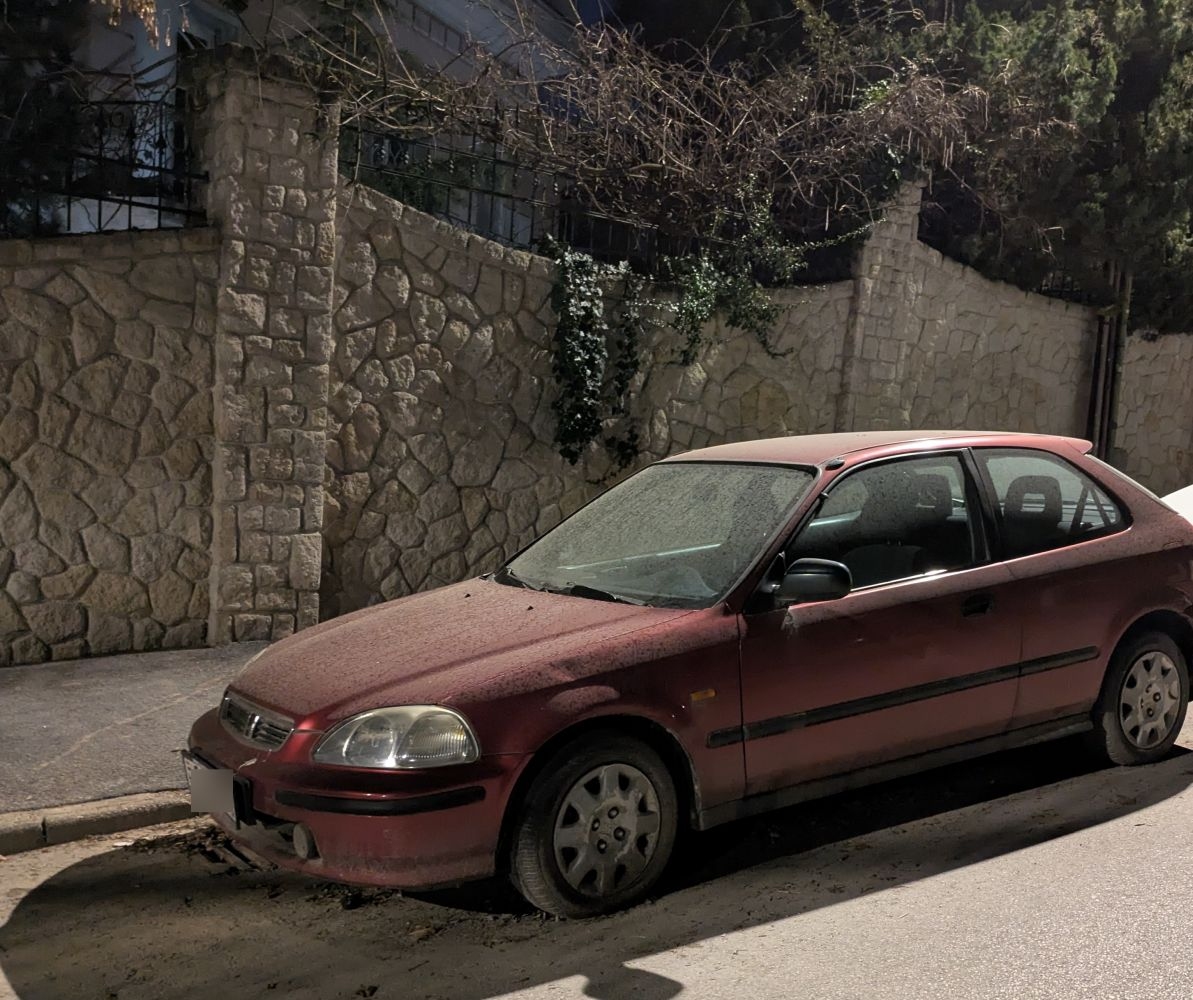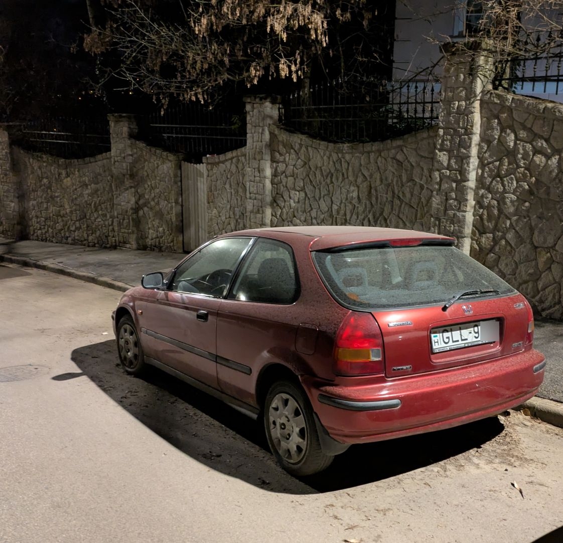 Endrődi Sándor utca 36. előtt egy régóta elhagyott autó áll lejárt forgalmival.