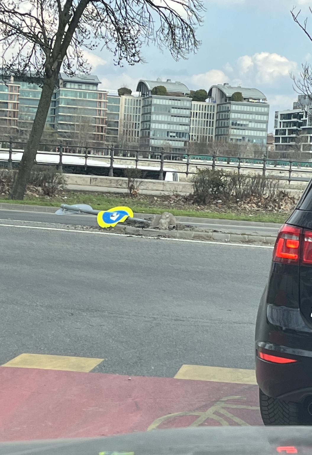 Magyar tudósok körút elején a Pázmány Péteren kidöntötték a táblát.