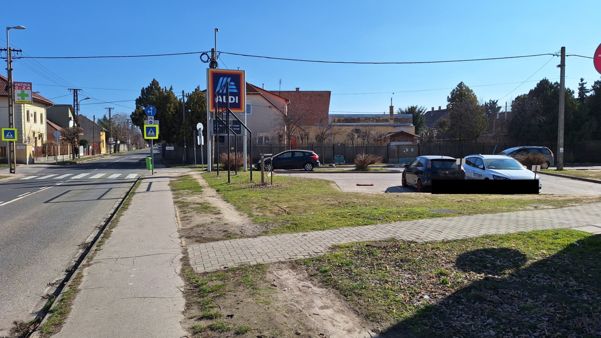 A Székelyhíd utca 23. előtt van egy fatuskó, belelógva a gyógyszertár felé vezető járdába.