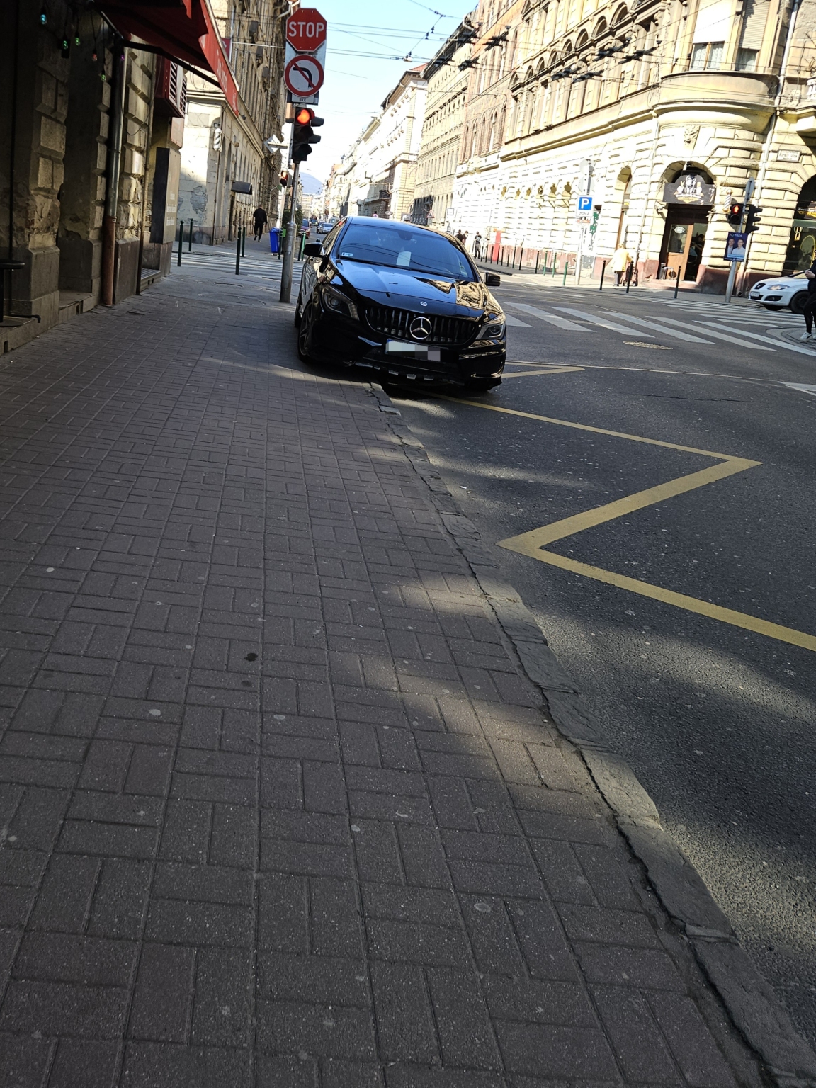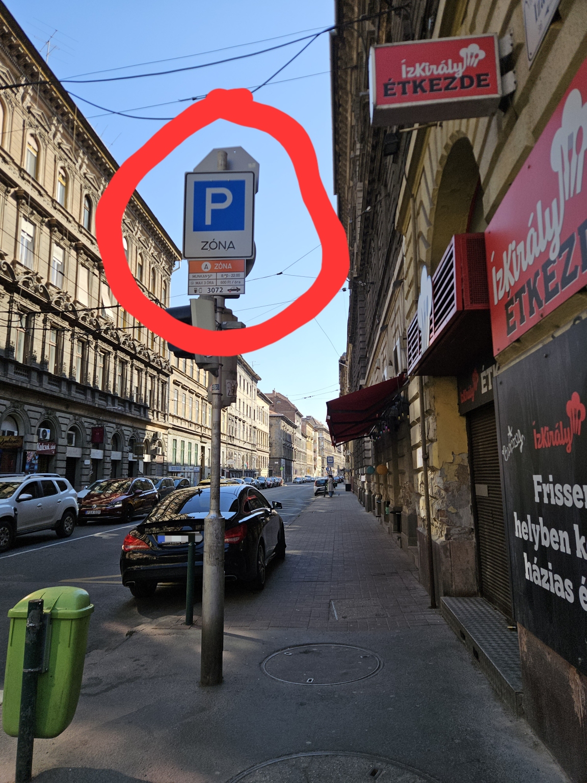 Kiegészítő tábla és megállni és várakozni tilos tábla nincs kihelyezve, így rendszeres a parkolás ezen a szakaszon és a járdán. A parkolósáv csak a megálló után kezdődik.