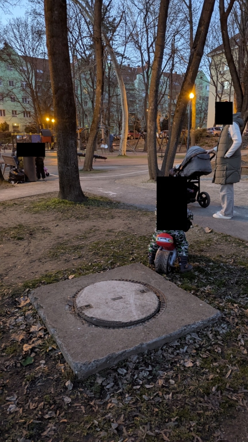 Az erzsébetligeti játszótér melletti csatorna fedlap jelentősen kilóg és nagyon billeg. Kérem, mielőbb legyenek szívesek rögzíteni!