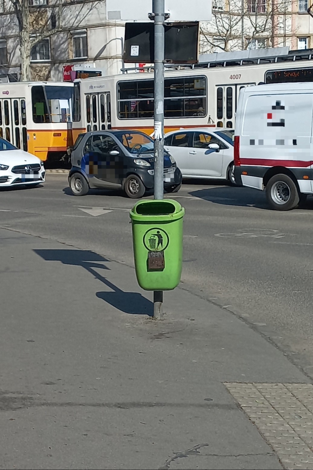 A XI. kerületben a Fehérvári út–Etele út kereszteződésben a jelzett helyen álló szemétgyűjtő megtelt, az ürítését szeretném kérni. (A képek tegnapiak, azaz március 13-a estiek.)