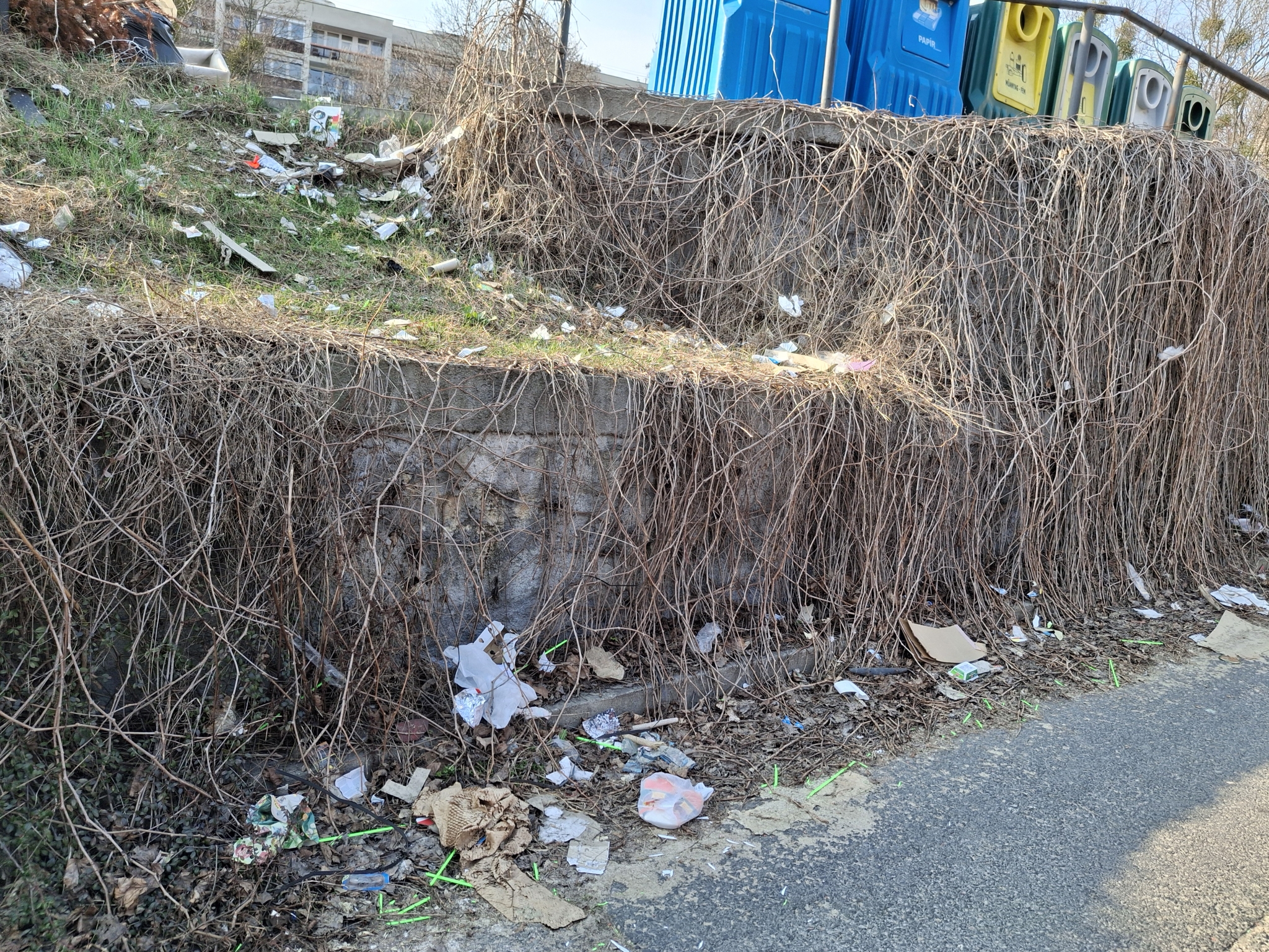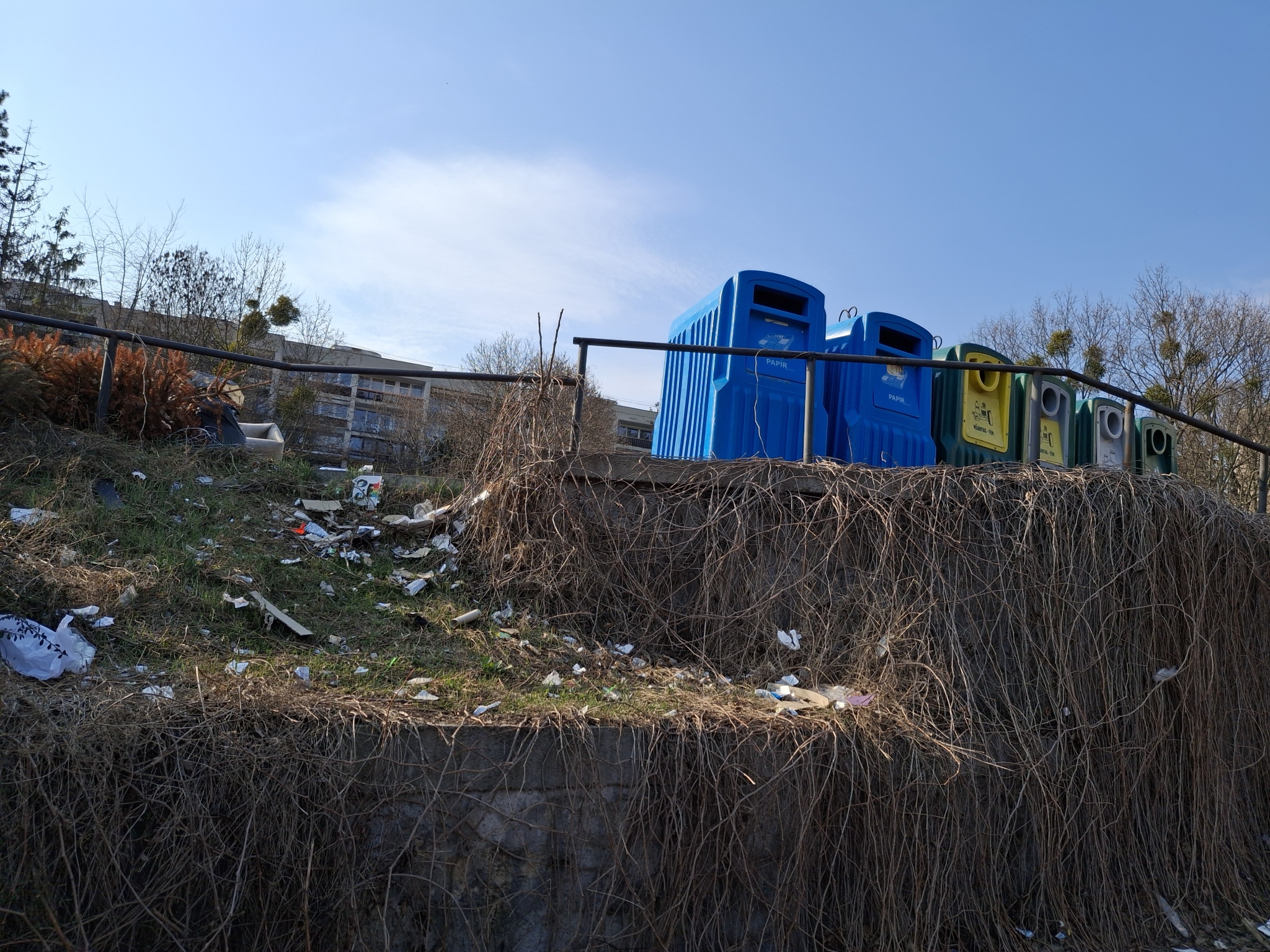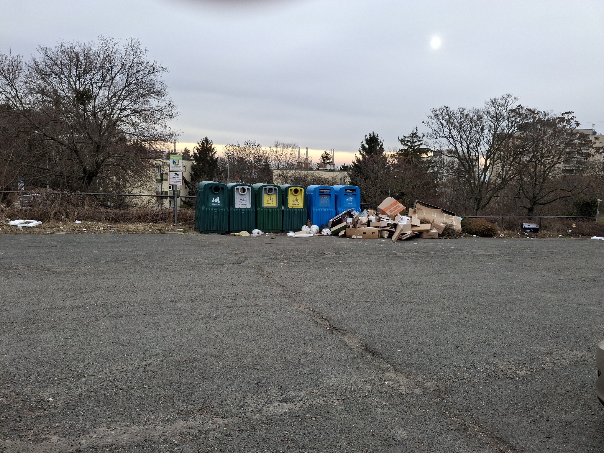 A 1124 Thomán István utca Sólyom utca kereszteződésénél található parkolóban elhelyezett szelektív hulladékgyűjtő egy szemétlerakóvá vált, hatalmas szeméthegy halmozódik fel minden nap, a szemetet pedig széthordja a szél, beborítva az egész parkolót és a környezetét.