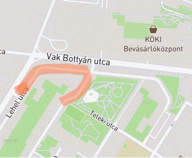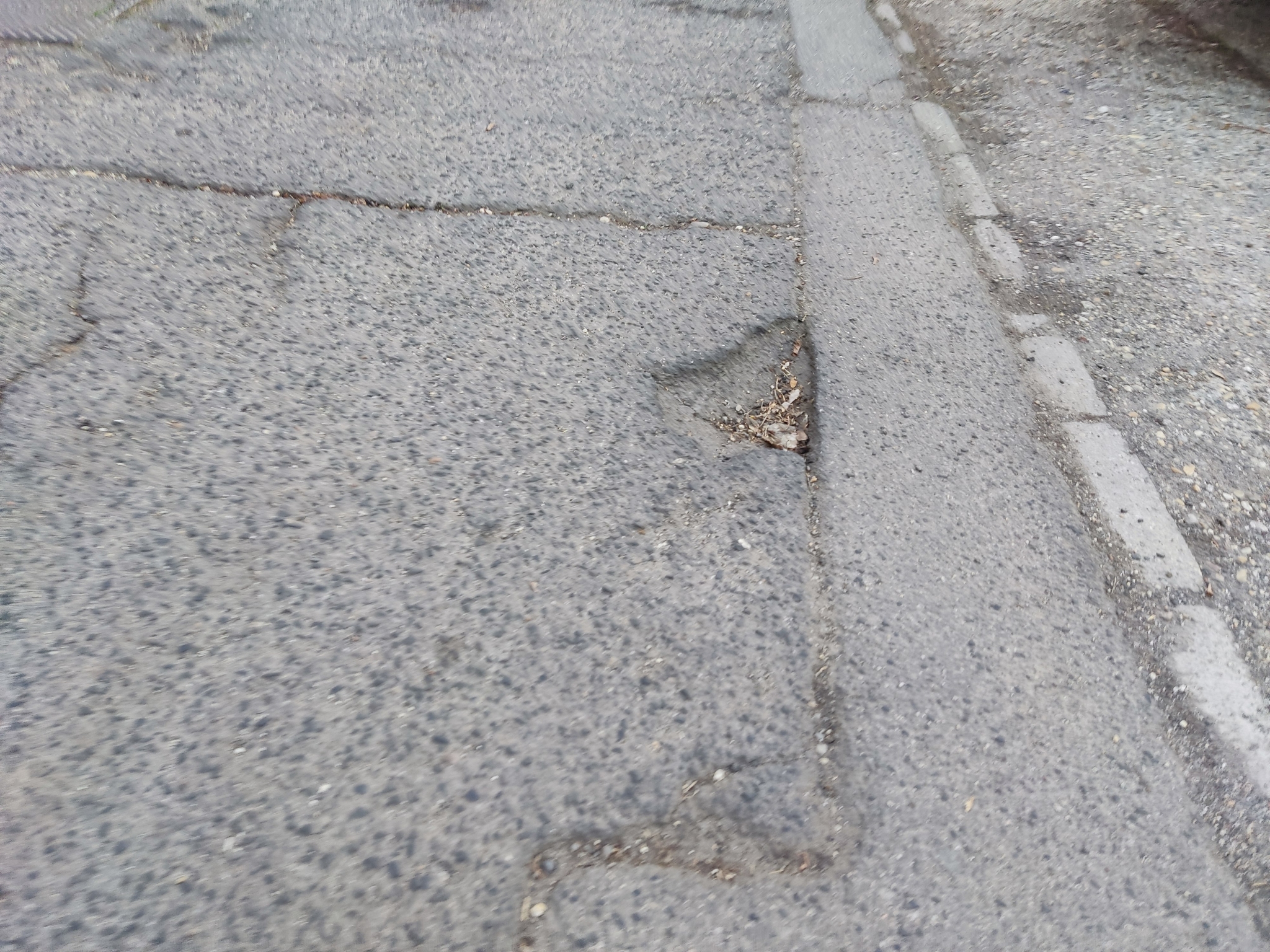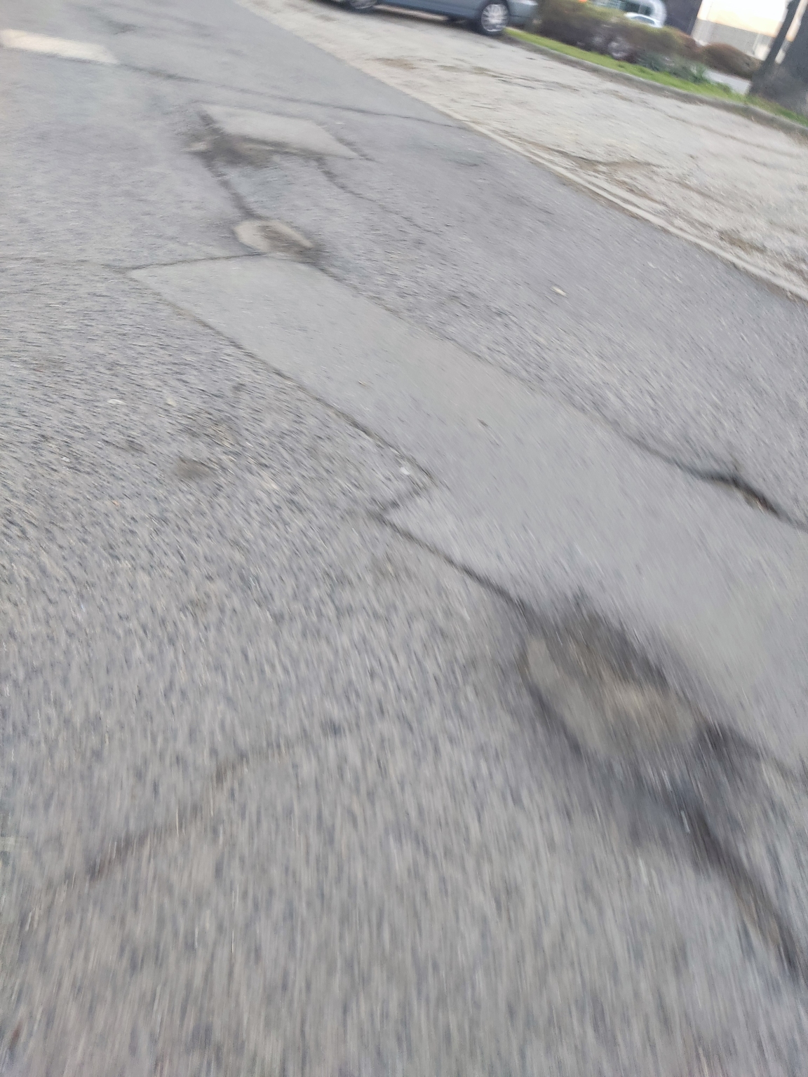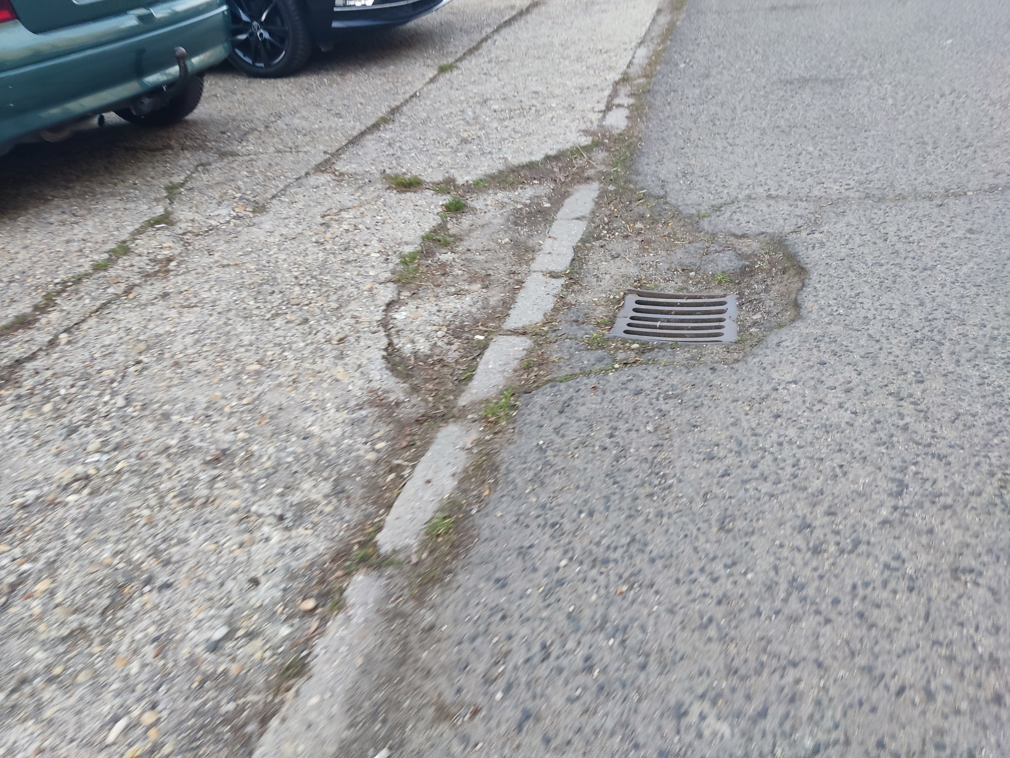 Kátyúk a lakótelepen. Kérjük a kátyúk megszüntetését a jelzett szakaszon. Korábban néhány javítása megtörtént, de számos kátyú található még a területen, több, jelentős mélységű, egy víznyelő és környéke is érintett.