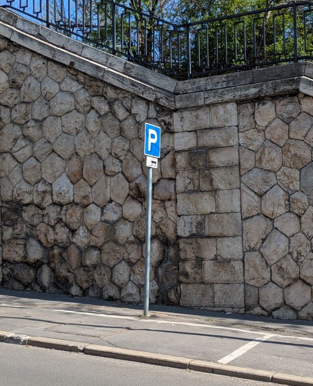 II. kerület Rómer Flóris utca 8. előtt, a 91-es busz megállójával szemben a lépcső mellett egy közlekedési tábla meg van dőlve. Valószínűleg nekiparkoltak.
