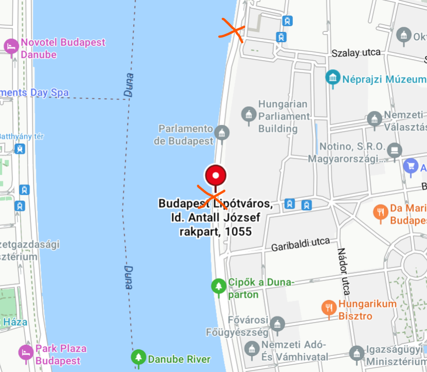 (Alább a térképen az id. Antall József rakpart kiválasztásánál a Kossuth térre ugrik magától, ez téves, a csatolt térképen jelöltem 2 lámpát, ahol ez elő szokott fordulni...)