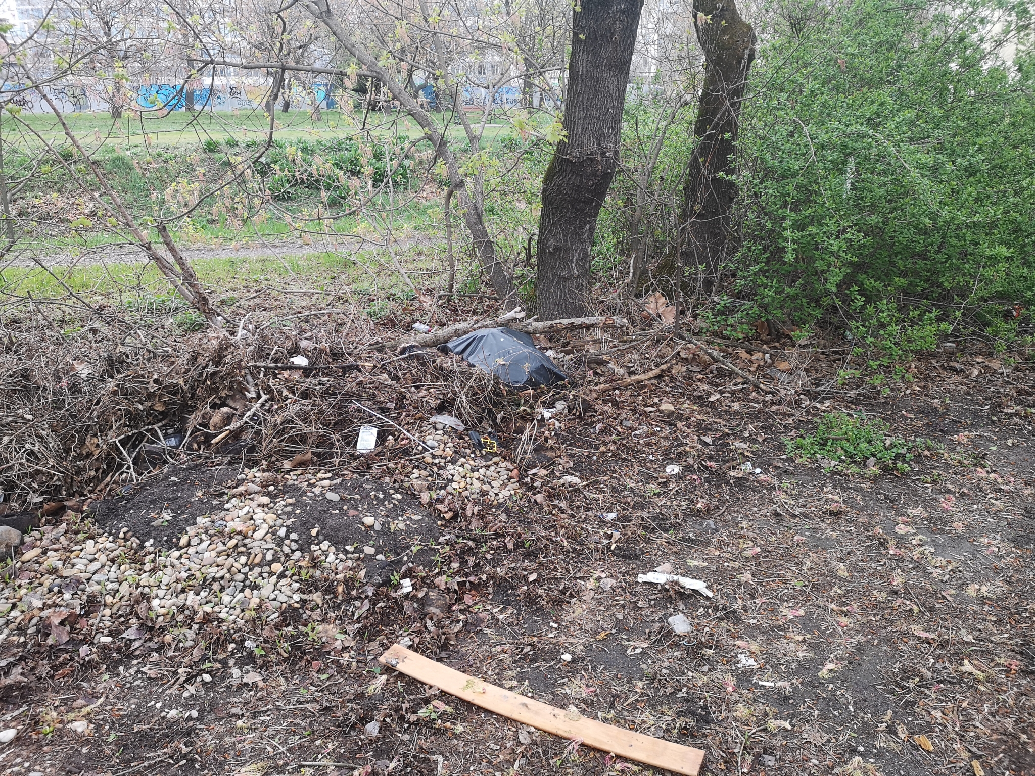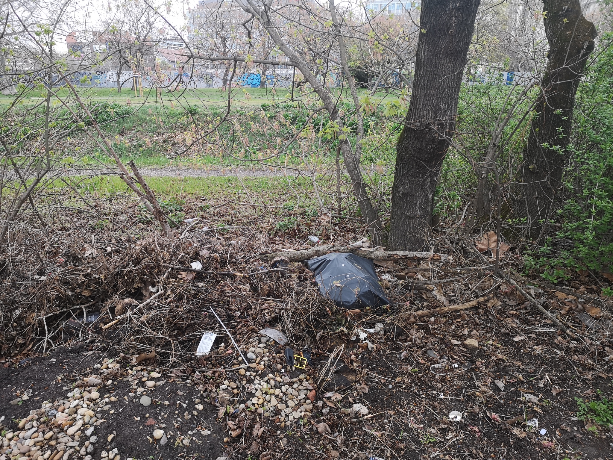 Hulladék hegyek egy év óta biztosan ott van. Azóta járok arra. Tahi utca, Rákos-patak mentén az Árpád hídnál ülőpadok túloldalán, rálátással hulladéksorra.