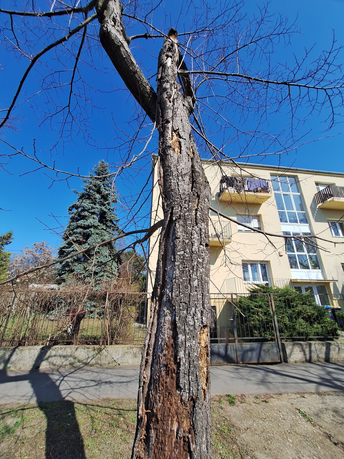 Ezúton jelentek be egy kifejezetten veszélyes sérült fát Önöknek.