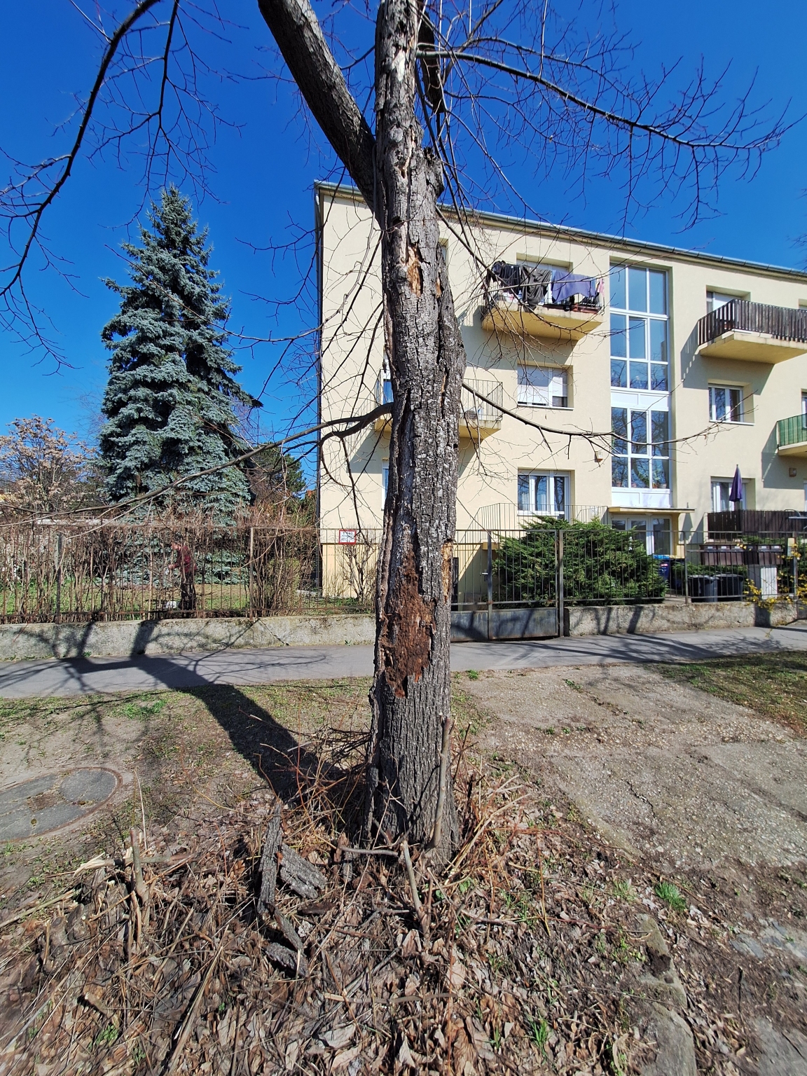 A Budapest XIV. Róna utca 81. ház előtt álló fán, jelentős területen korhadás látható, így az - veszélyessé vált. (Lásd a csatolt képet.)