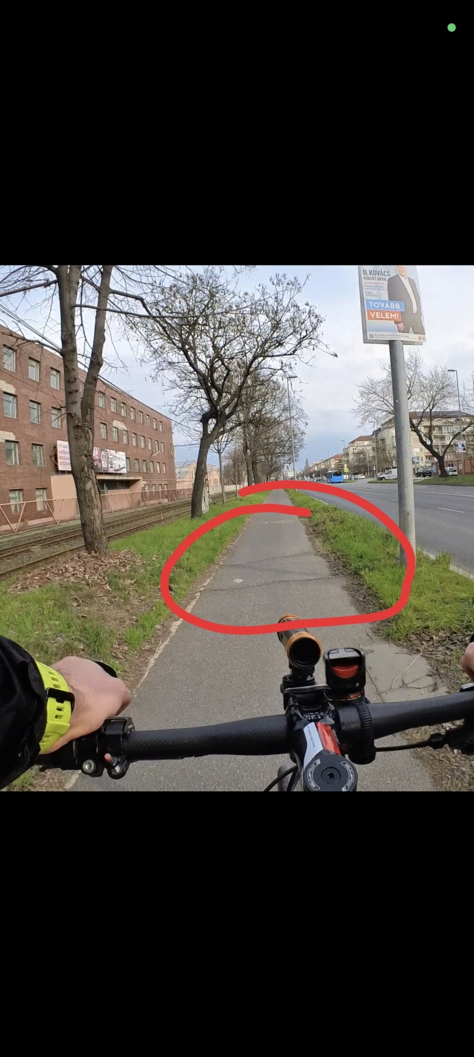 Kőbányai úton pont ahol a jelzőtábla alatt megy át a a kerékpárút, van hét gyűrődés keresztbe ami már olyan magas, hogy megdobja a kerékpárt. Kérem marják le, javításig jelöljék festékkel.