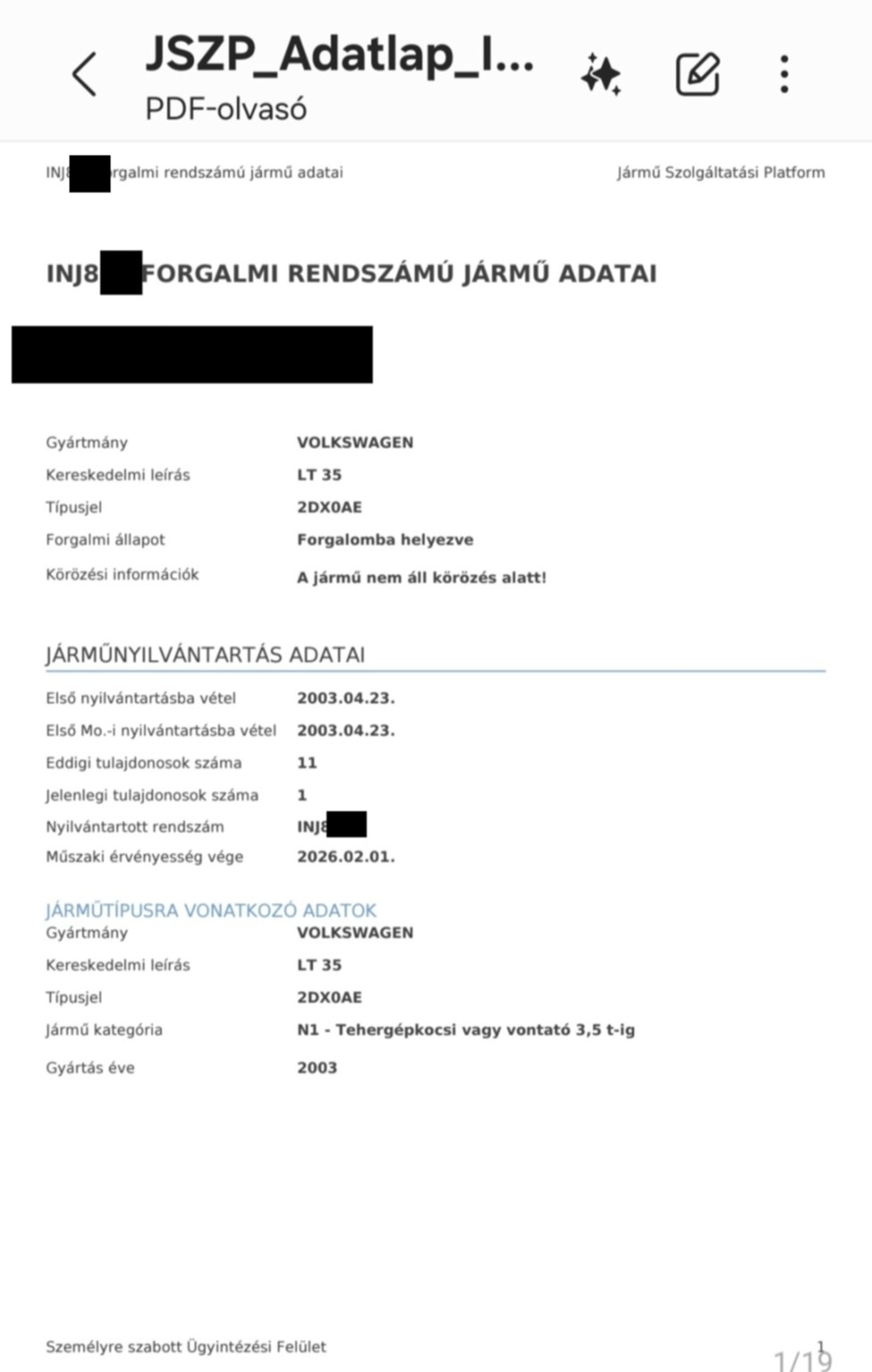 Lejárt műszakival rendelkező fehér VW furgon parkol a Bp. XIV. Abonyi utca 11. előtt sokadik napja.