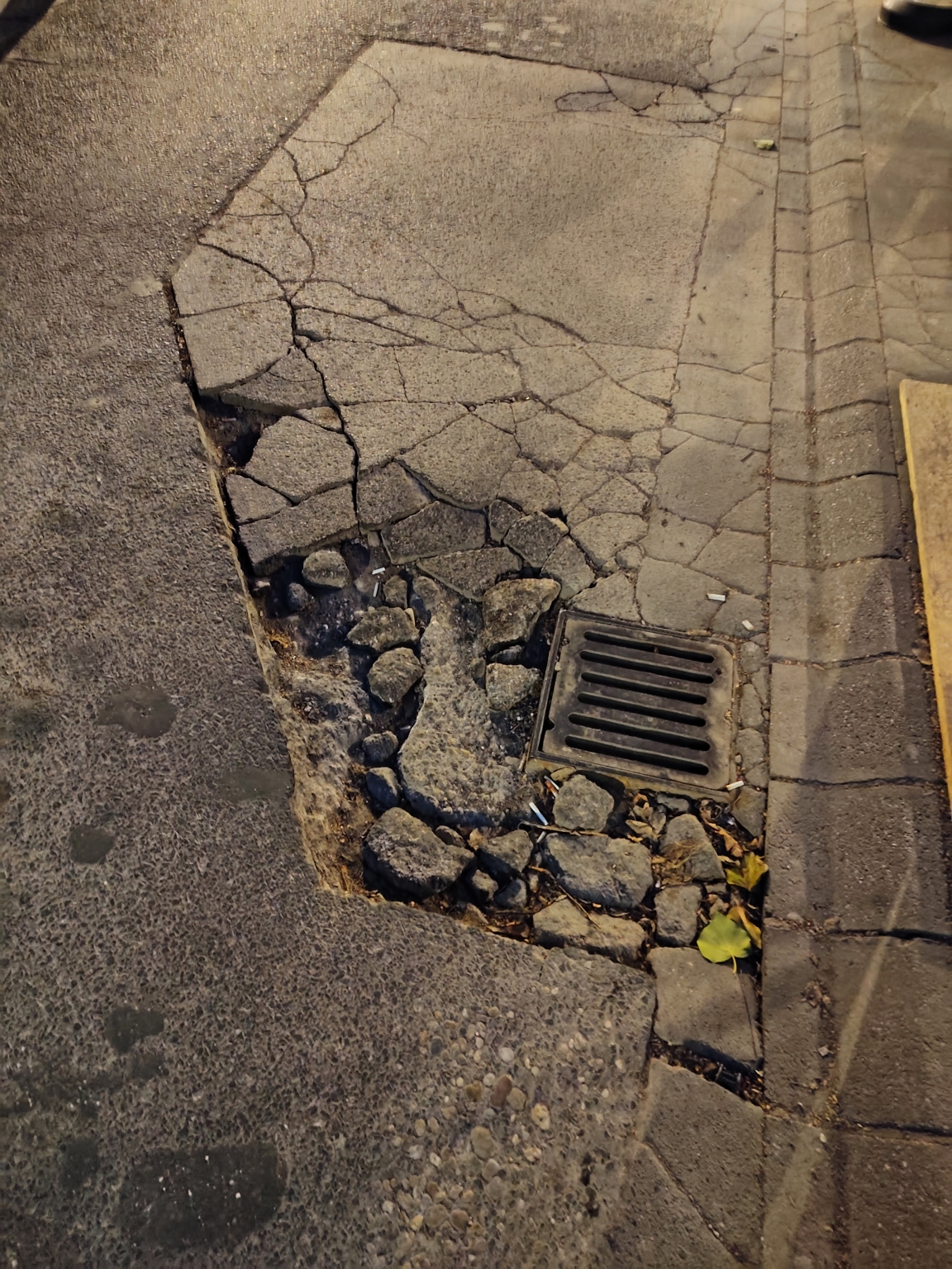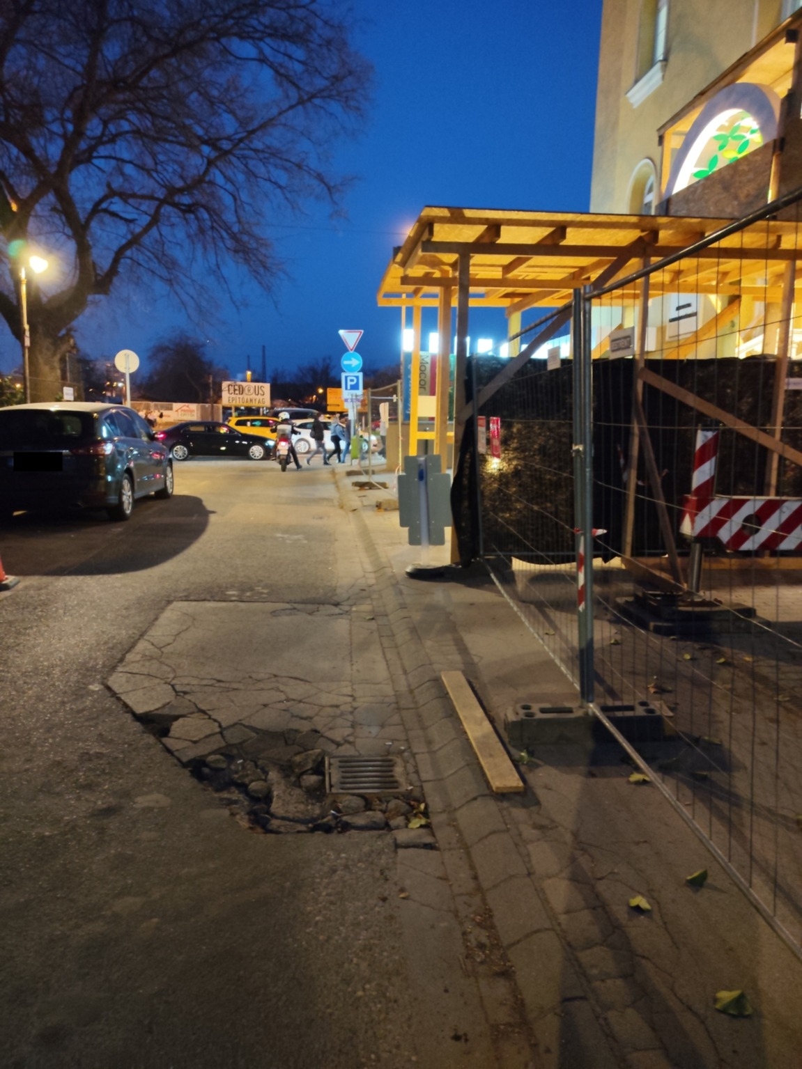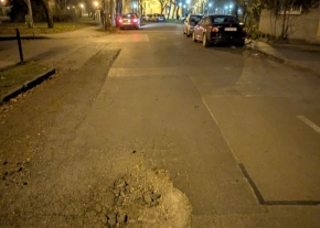 Kátyú a kórház előtt
