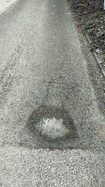Az Árnyas út 24- előtt a bukkanó mögött van egy barátságtalan méretűvé terebélyesedő kátyú.