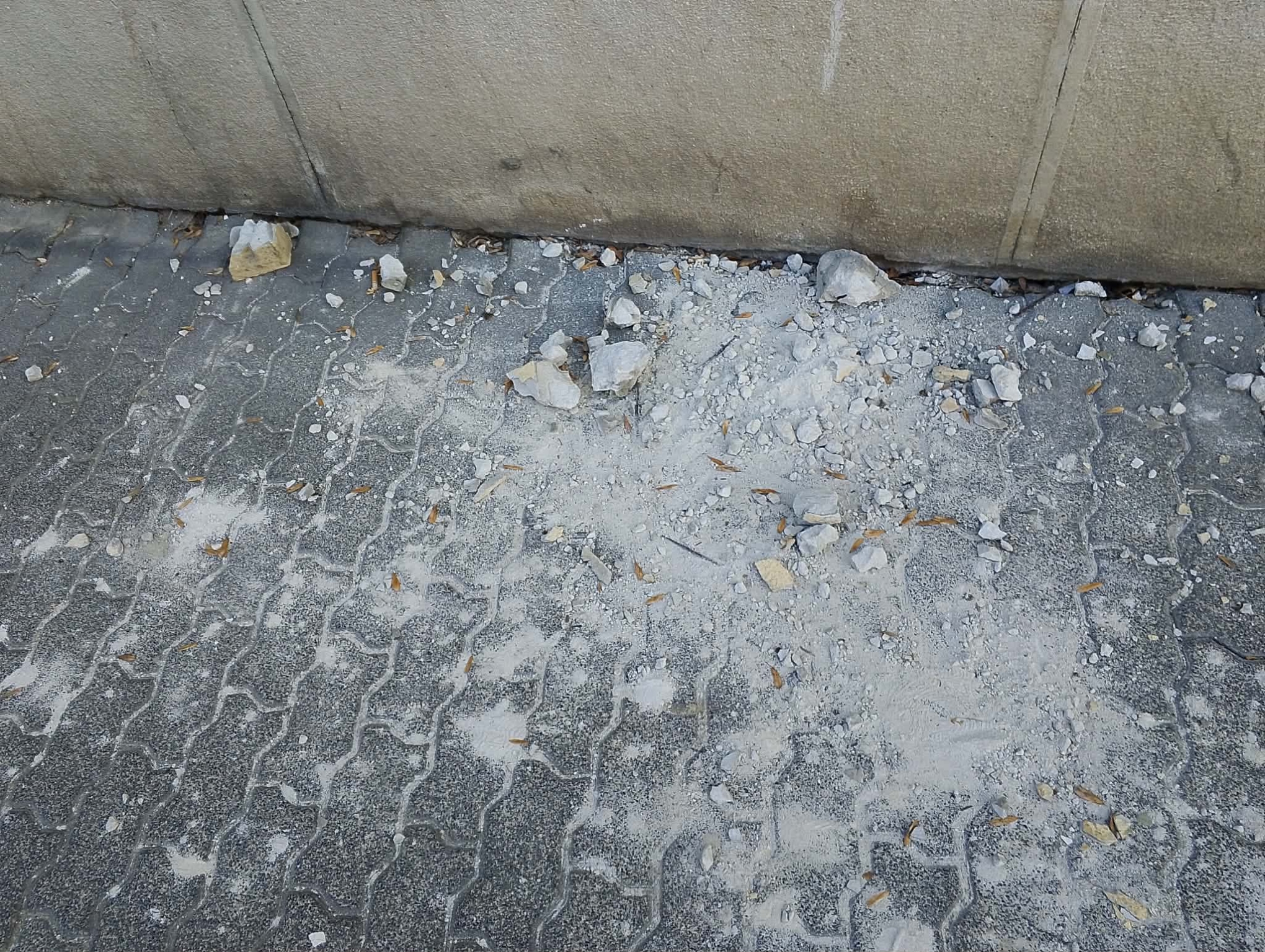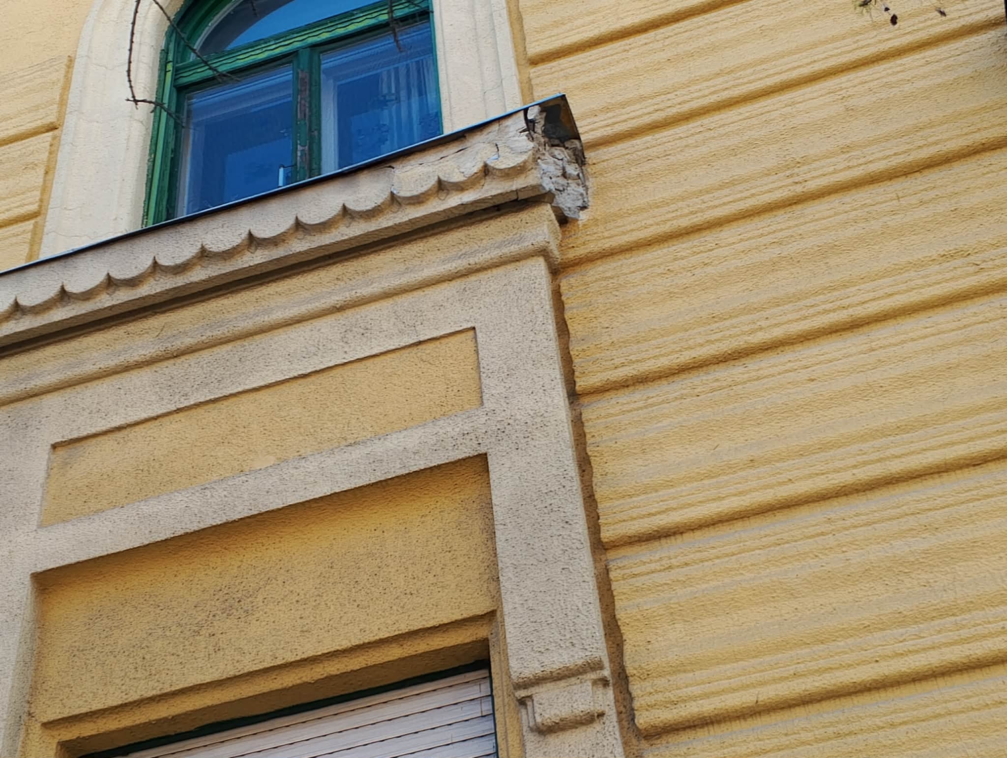Épületről, ablakpárkányról hullik a vakolat. - Balesetveszély!