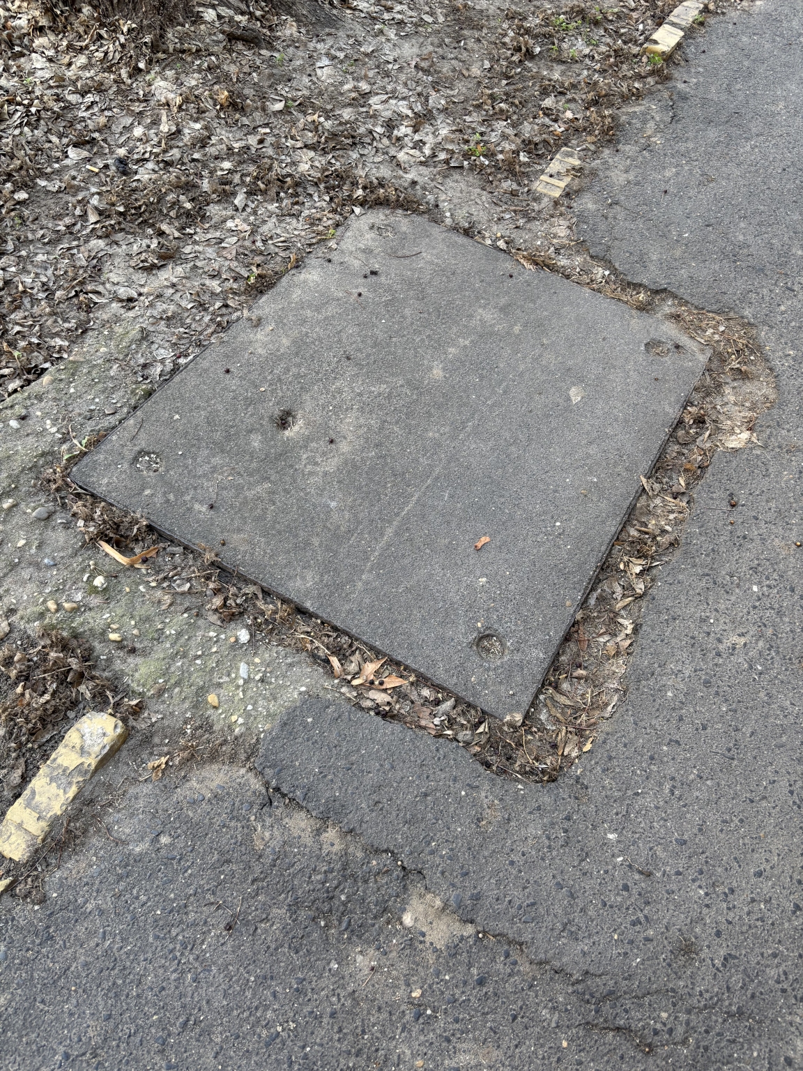 A XIX. kerület Mészáros Lőrinc utca 21. szám előtt található a képen látható aknafedél, amely körbe már be van repedezve, illetve néhány helyen már lyuk keletkezett, ahol befolyik a víz.