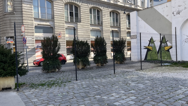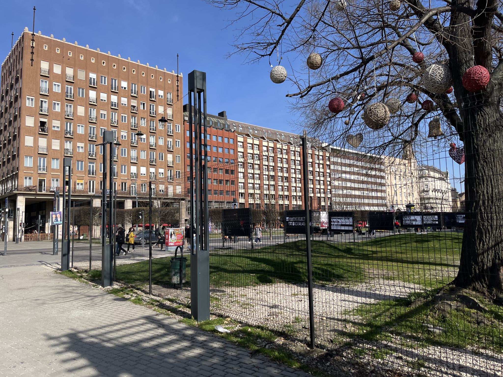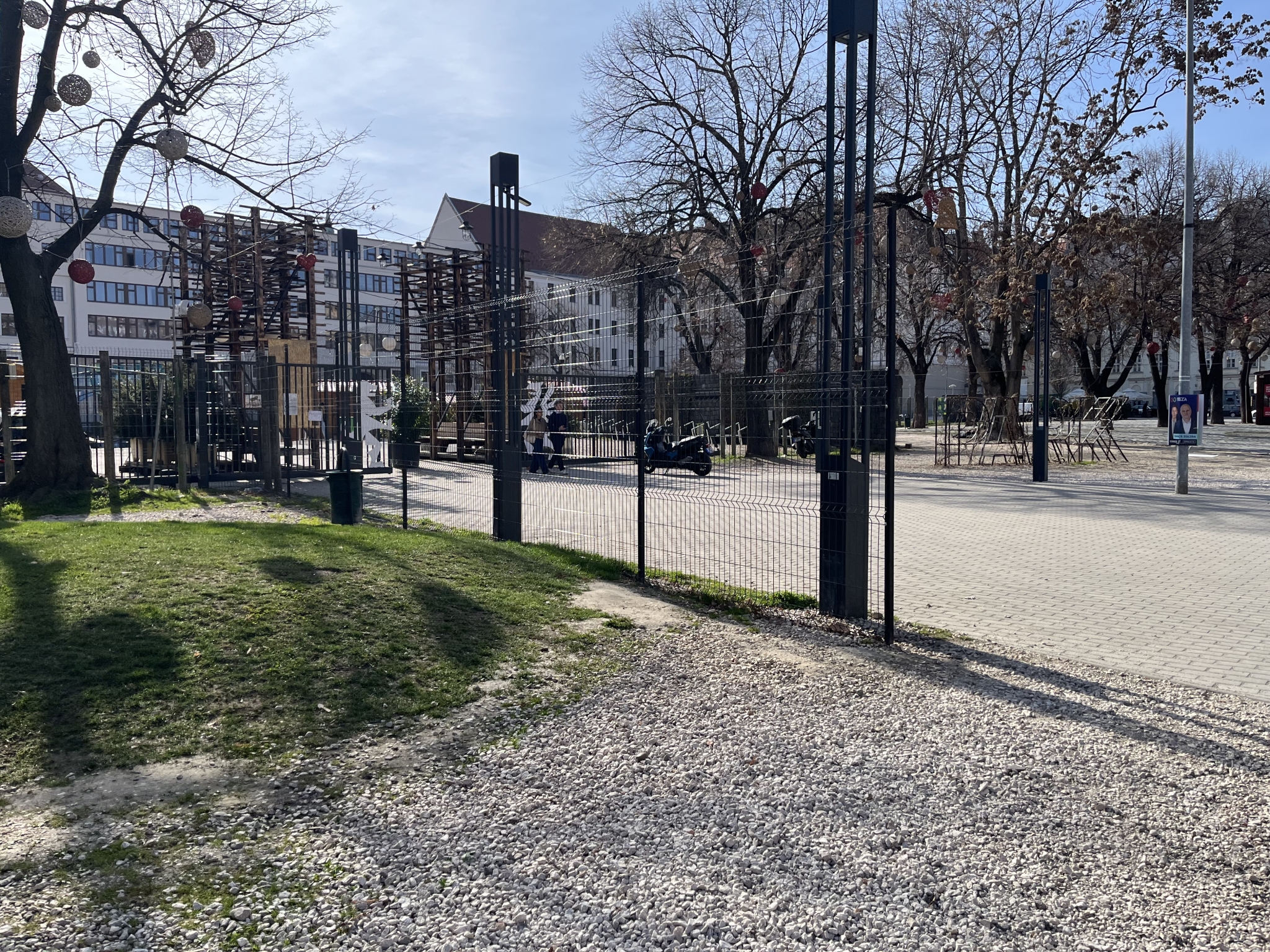 A karácsonyi vásár bódéi köré épített kerítések maradványai 3 hónappal később is ott éktelenkednek a Városháza parkjában!