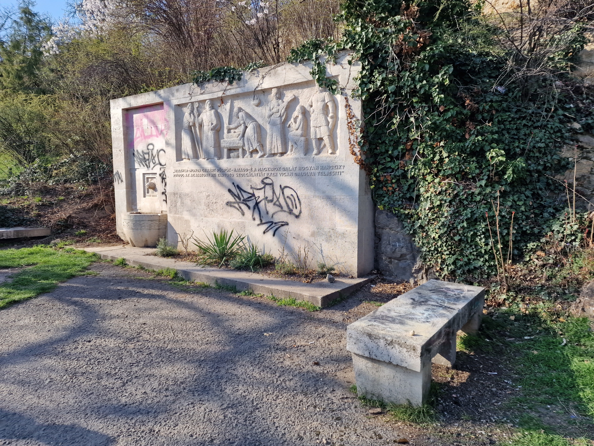 A Gellért legenda-kút megint össze van firkálva.