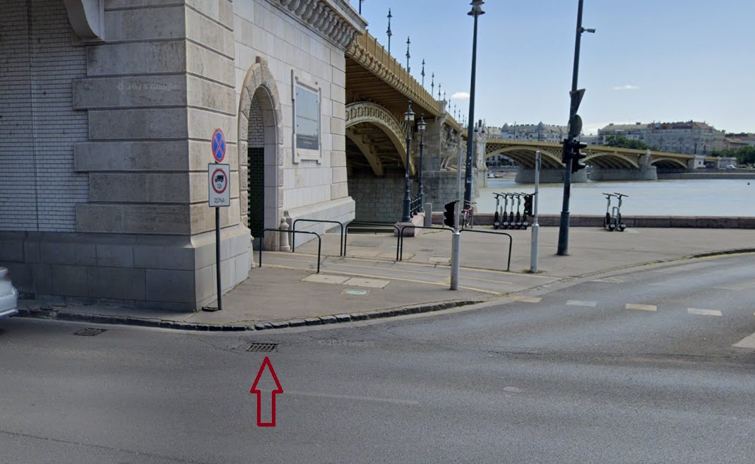 Az egész úttest indokolatlanul mélyen bemélyed egy víznyelőrács körül, hatalmas ütést mérve az autók egész futóművére. Kerekek szakadhatnak ki a hiba miatt a helyükről, fokozottan balesetveszélyes, mert pont a jobb kerekek nyomvonalában van, ki sem lehet kerülni.