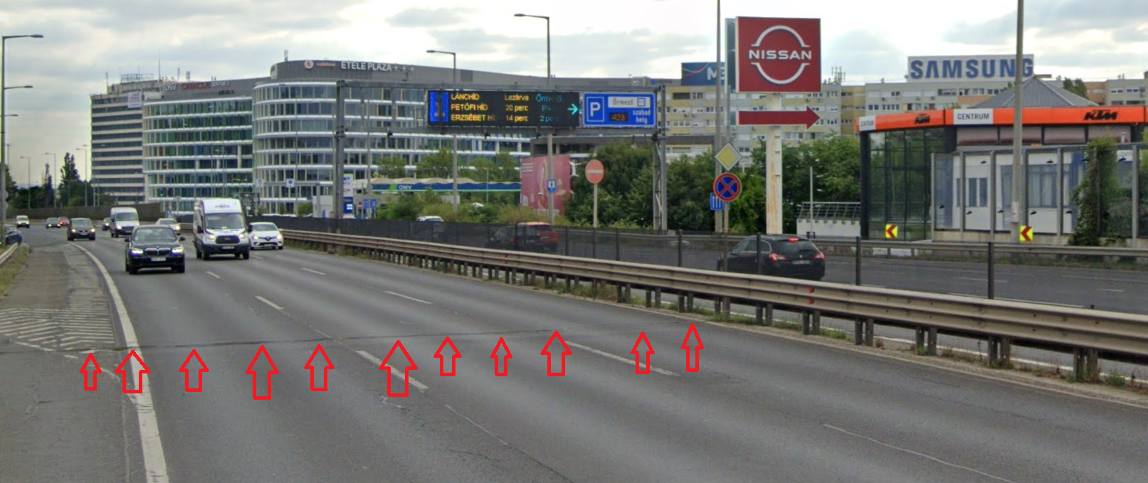 Az M7-es pályára vezető út teljes hosszában fel van púpozódva az Orlen benzinkút után. A hatalmas bukkanó szétroncsolja aza utók futóművét és kikerülhetetlen.