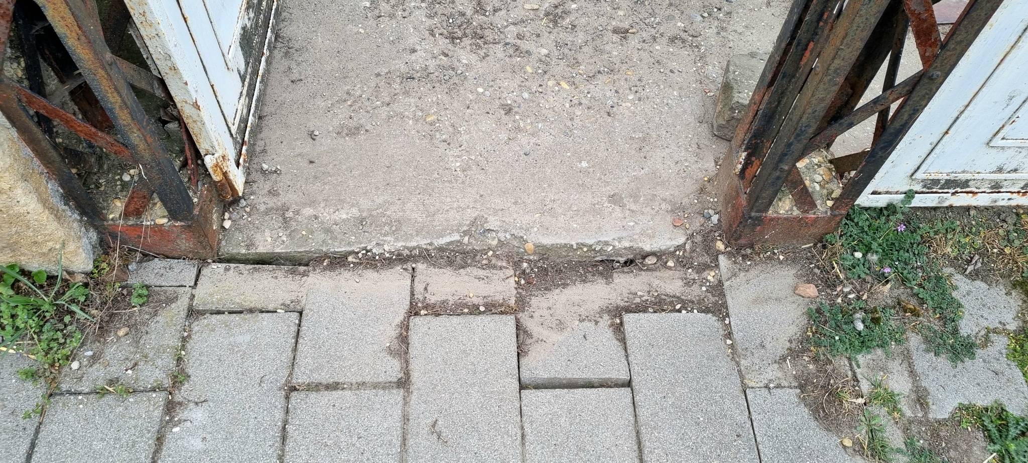 Családi ház kiskapuja előtt kezdett besüllyedni a járda. Mivel kislányommal jövünk-megyünk, babakocsival kezd nehézzé válni a ki és bejárás a kapun.