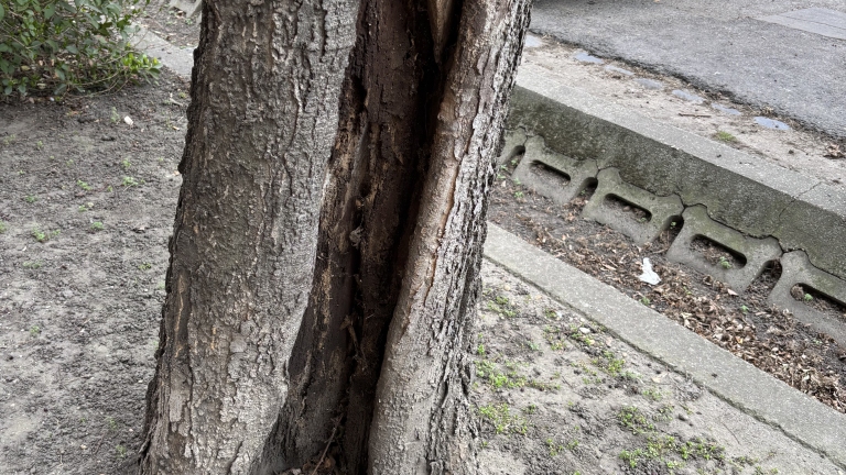 A XIX. kerület Kós Károly tér és a Mészáros Lőrinc utca sarkán található a képen látható korhadt fa. Ahogy a képen is látható a fa törzse szinte teljesen el van korhadva, ami a nagy szélben könnyen ki is dőlhet. Kérem az illetékesek vizsgálják meg a fát és szükség esetén intézkedjenek!
