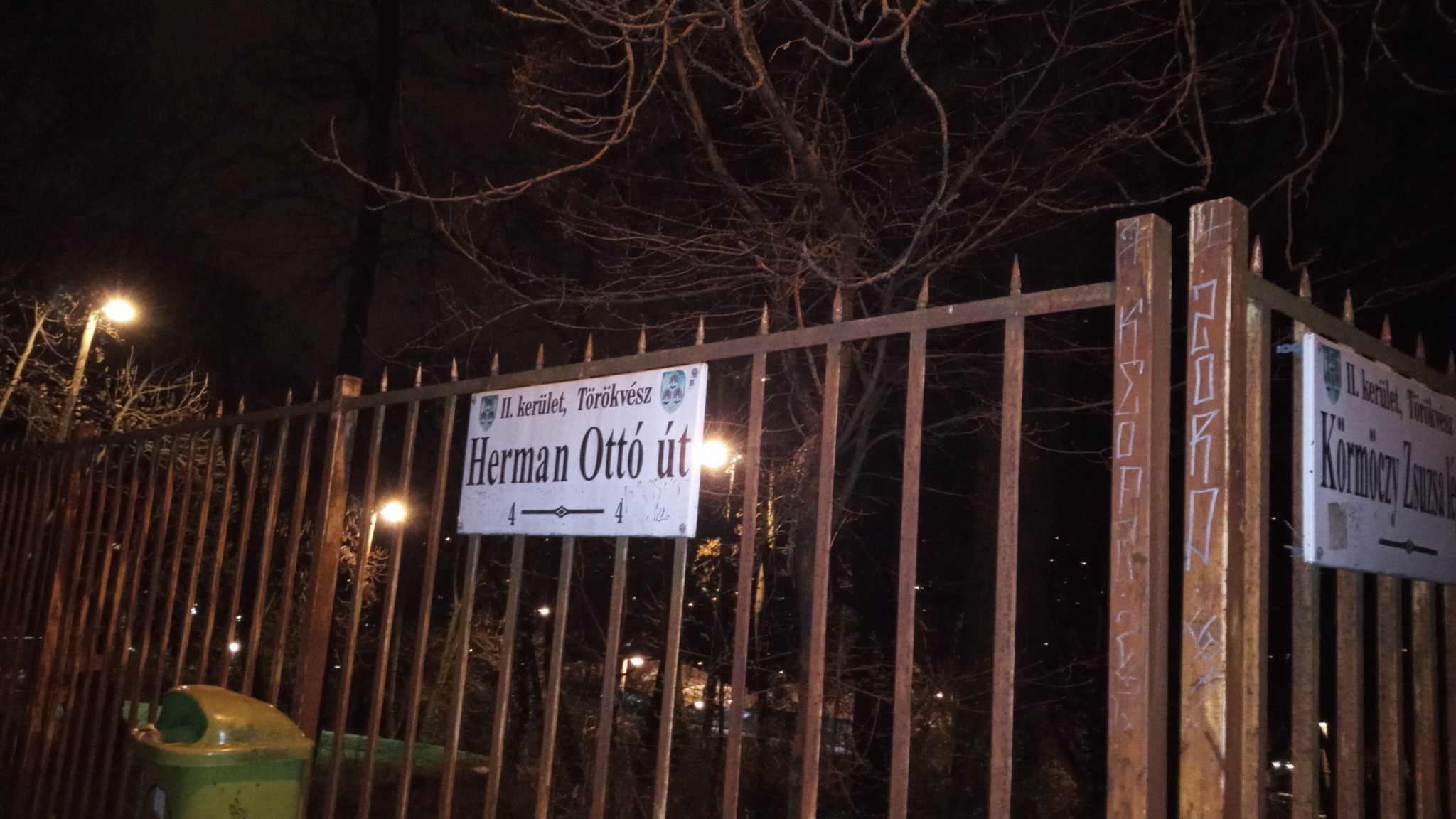 2026. március 16-án hétfőn az esti órákban észrevettem, hogy a Budapest II. kerület Herman Ottó út 4. és a Körmöczy Zsuzsa lépcső kereszteződésénél, a lépcső tetejéről lefelé néző irányból bal kézre esően (kb. 10 m) az első betonoszlopról a földig lelógott egy vékonyabb vezeték a kerítés felé.