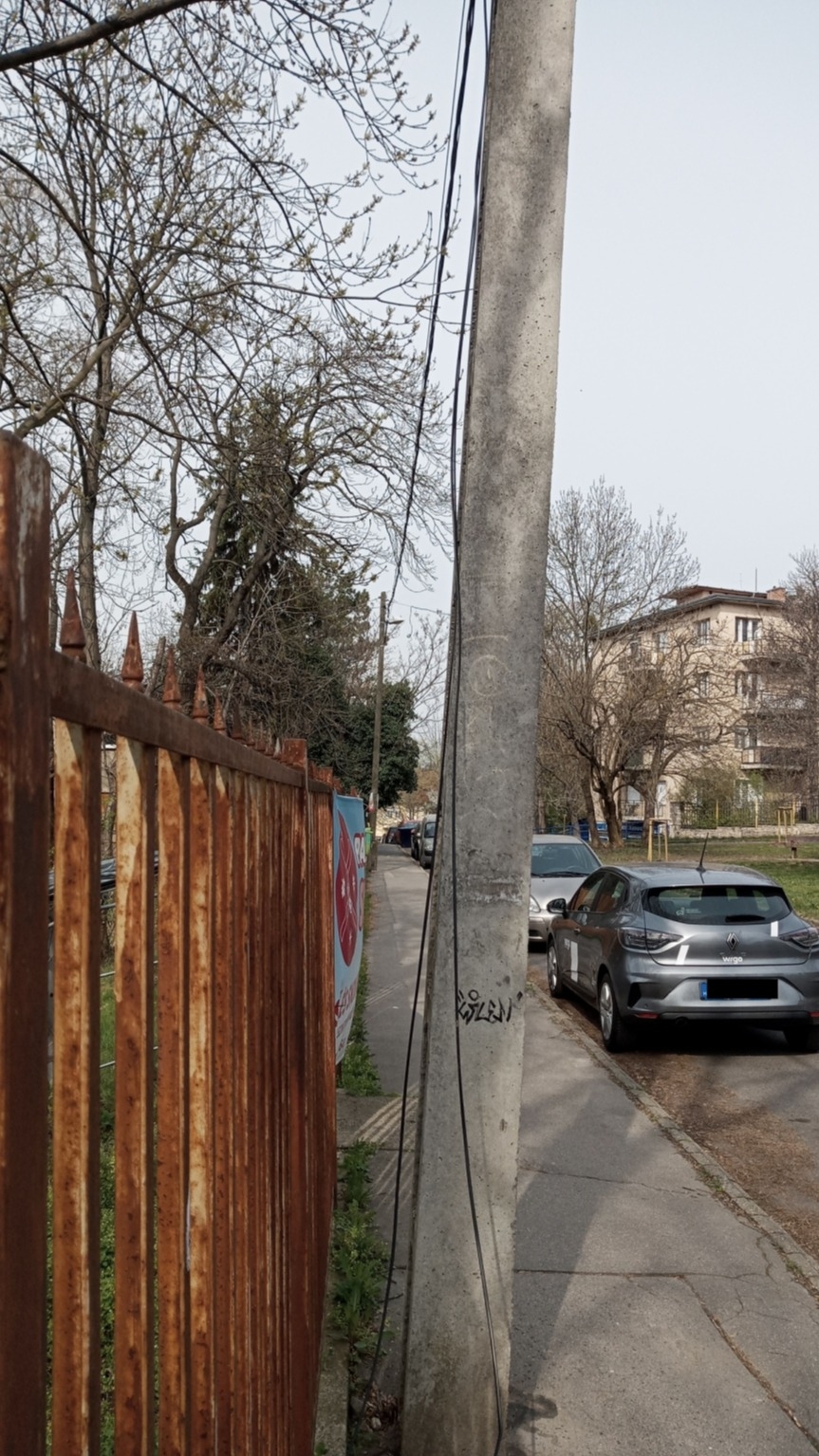 Még aznap este bejelentettem az észlelteket az MVM 06 80 38 39 40 közterületi hibabejelentő vonalán, ahol azt az információt kaptam a diszpécsertől, aki megnézte térképen a kérdéses oszlopot, hogy nem áramvezetékről, hanem távközlési vezetékről van szó.