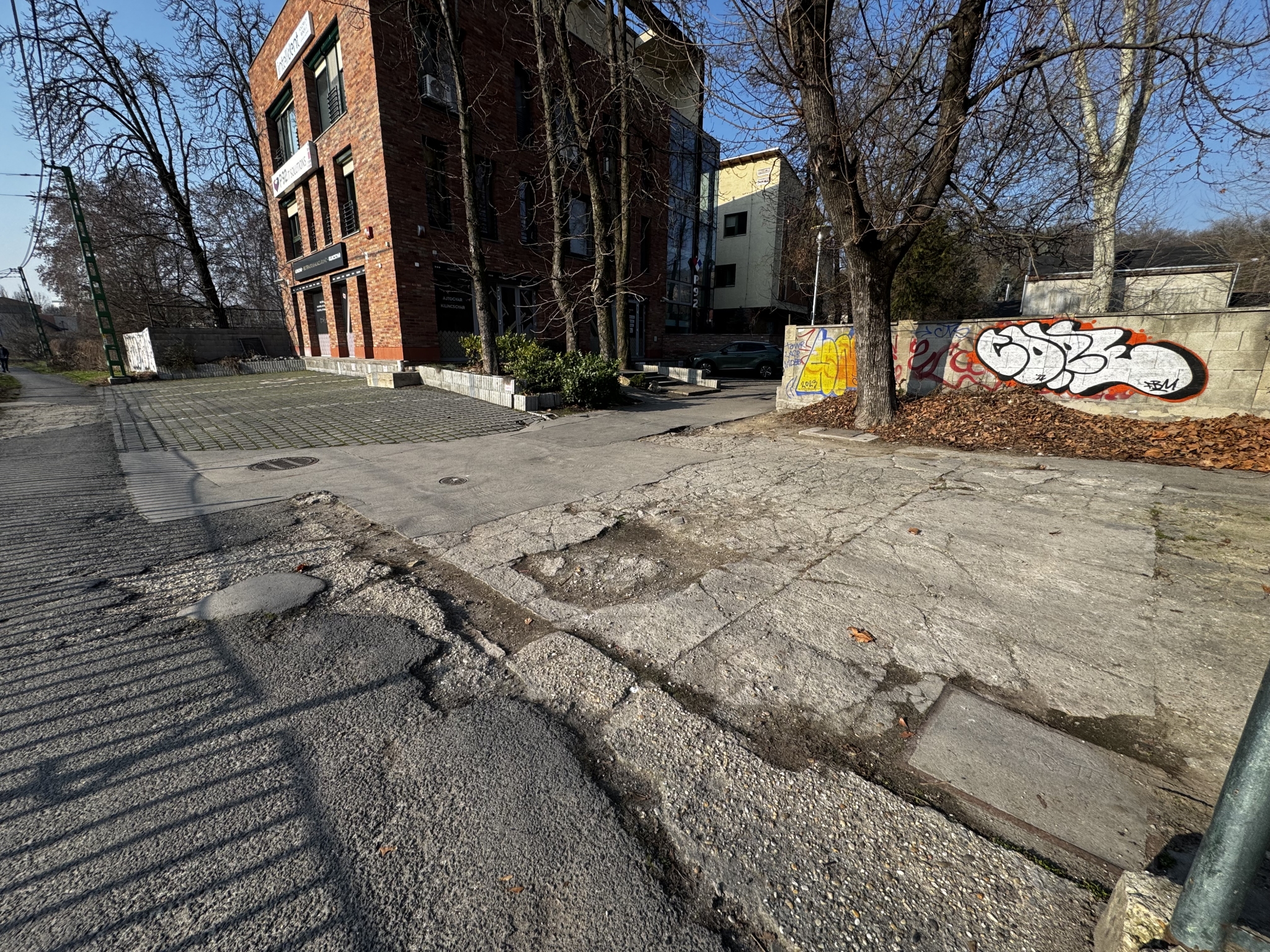 Sajnos már igen rossz állapotban van a Fürdő utca elején, a telkükön található parkoló burkolata. Kérem, javítsák meg!