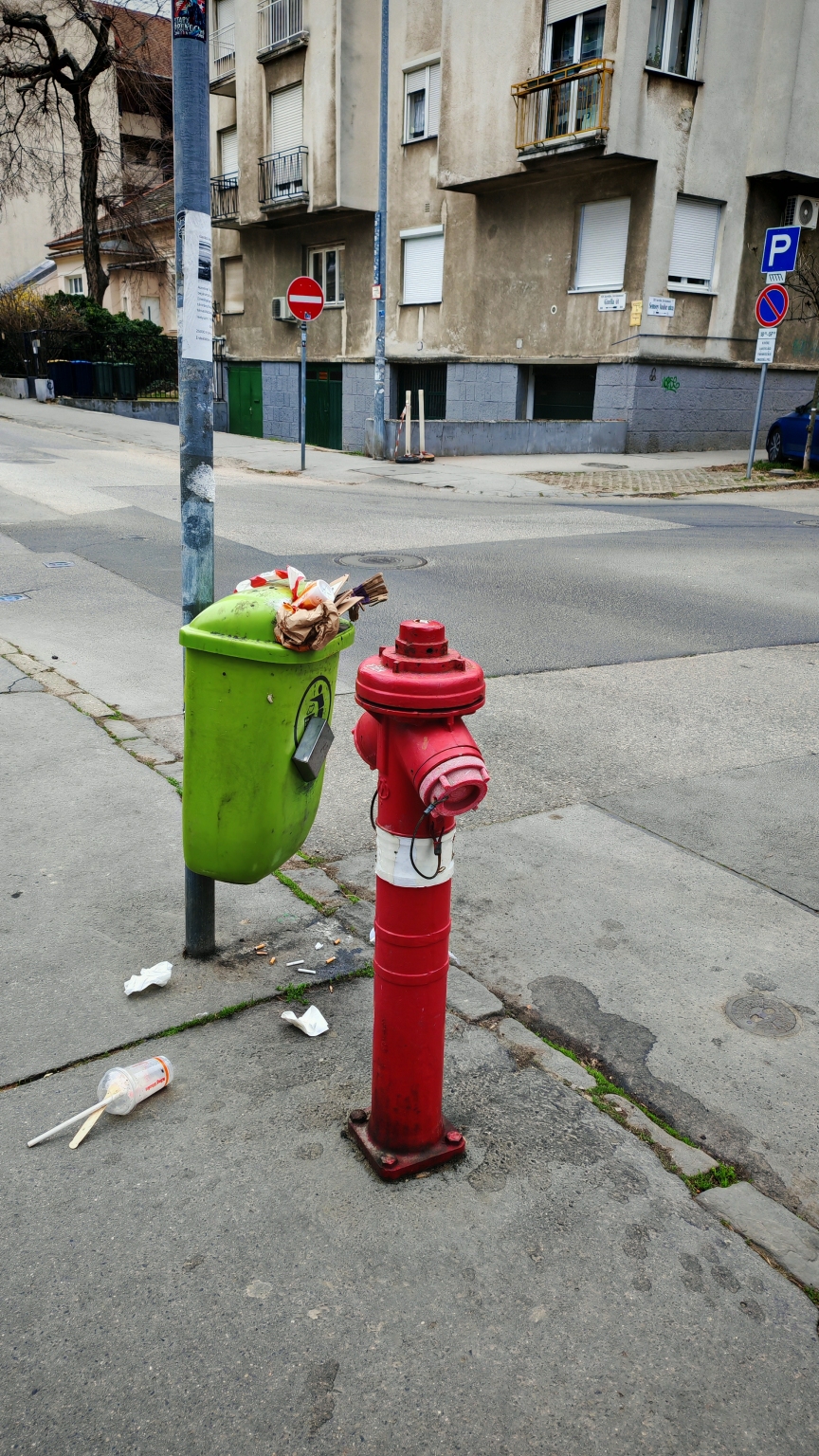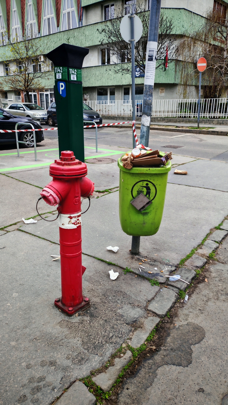 Csurig telt utcai szemetes.