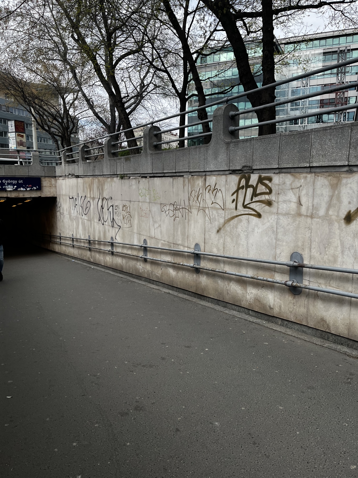 Dózsa György út M aluljáró “B” kijáratánál a falon több graffiti is található, kérem amennyiben lehetséges, távolítsák el azokat! Köszönöm.