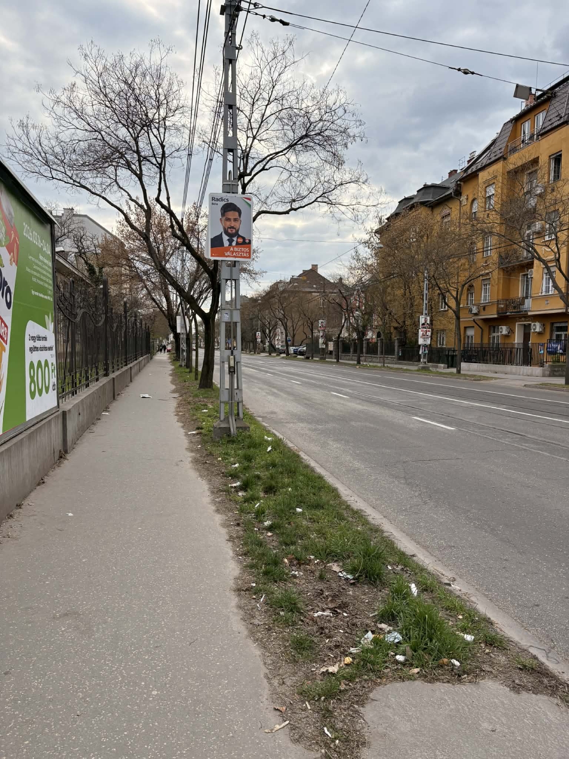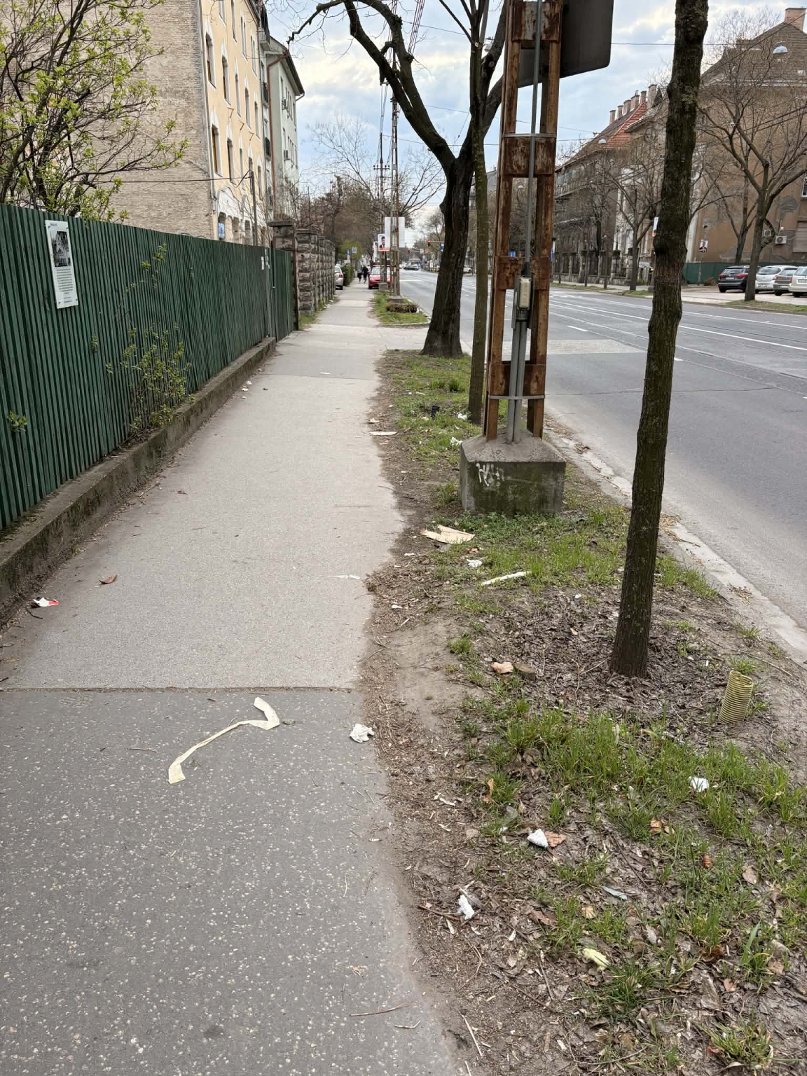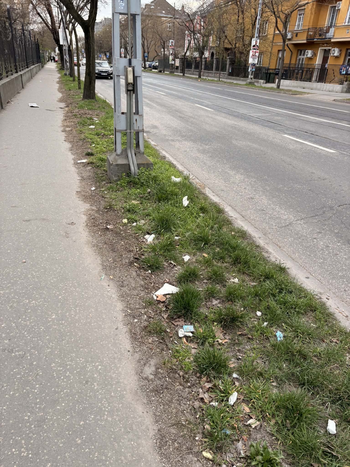 A Bosnyák tér és Tisza István tér között gyakorlatilag végig tele van szeméttel a zöldfelület mindkét oldalon. Régóta ezt tapasztaljuk és nem látni változást.