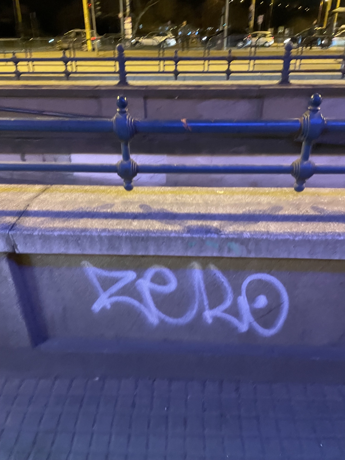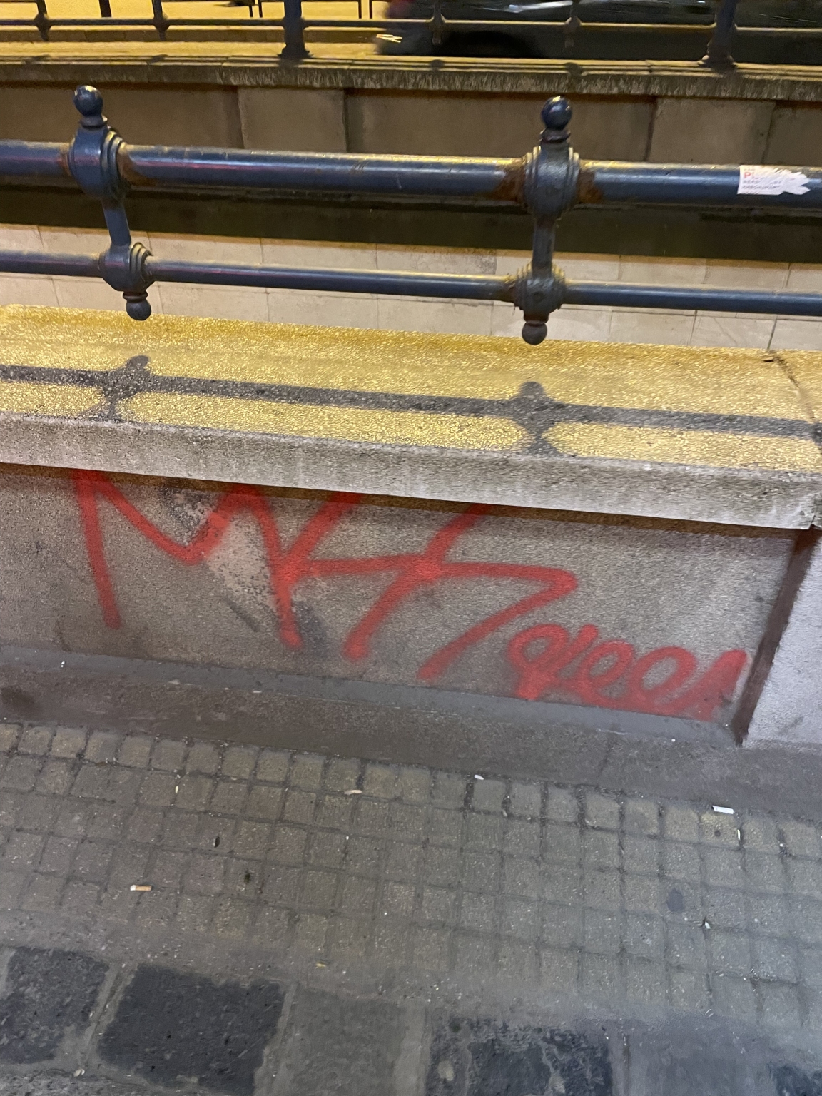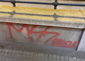 Az Alkotás utca elején, a lejáró korlát alatti rész össze van firkálva.