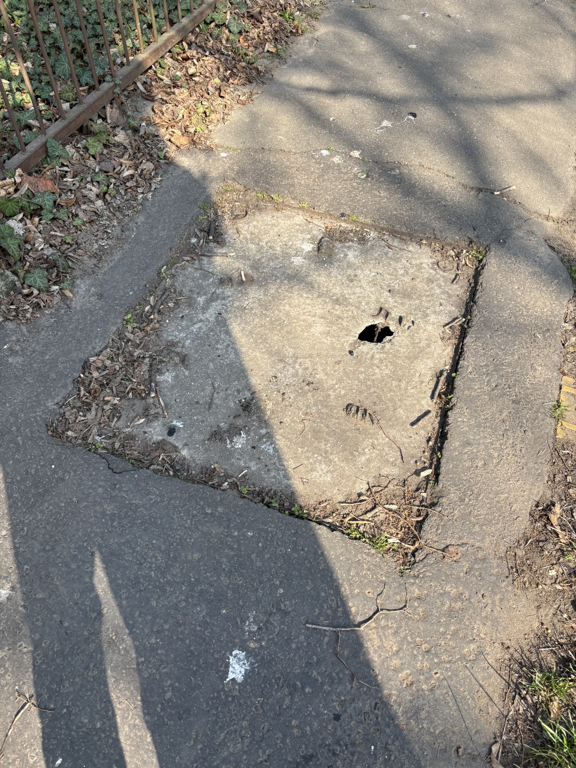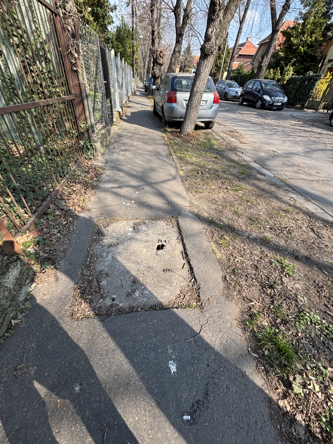 A XIX. kerület Tas utca 5. szám előtt található a képen látható aknafedél, ami elég balesetveszélyes állapotban van már.