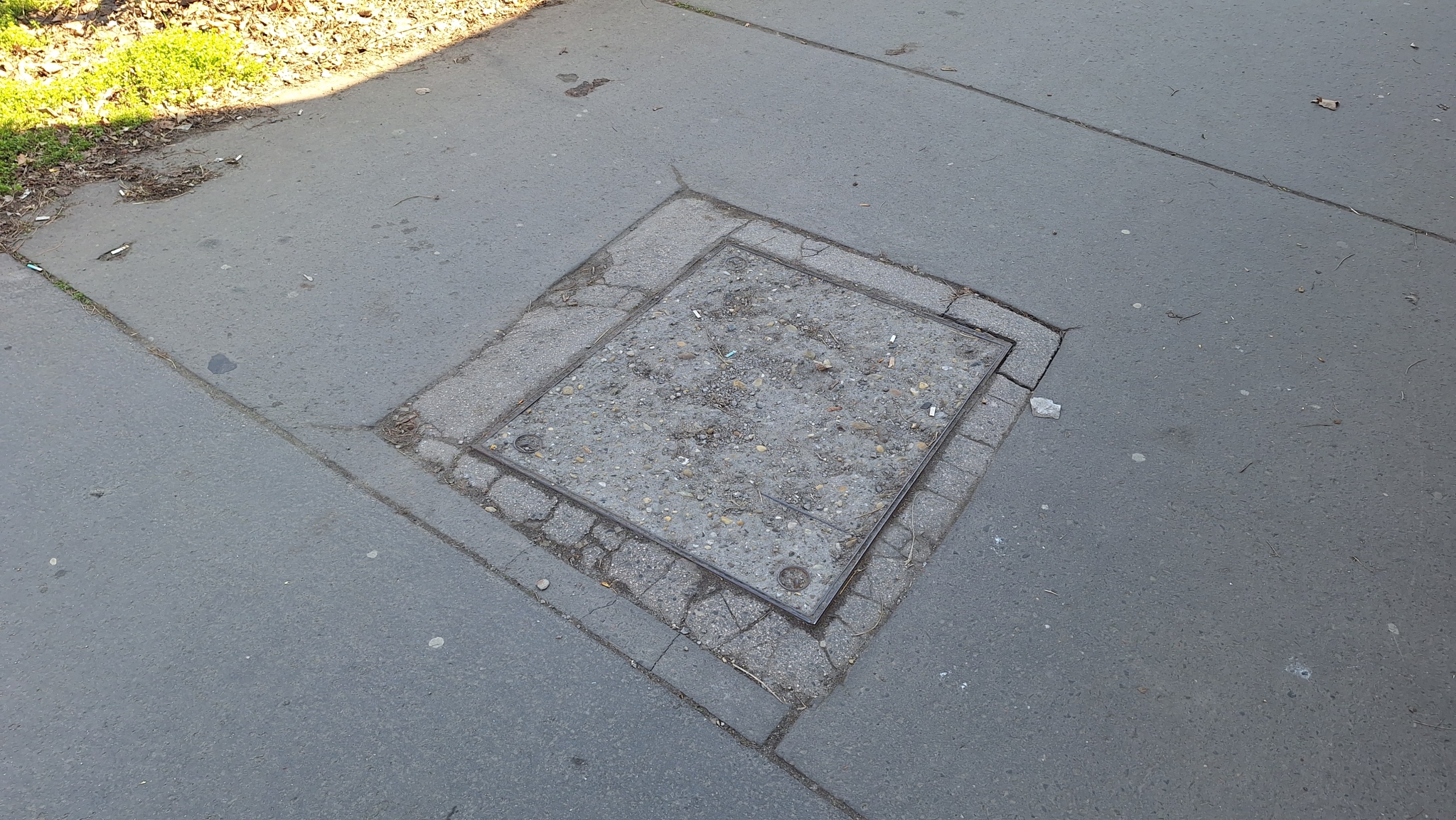 Az Üllői út 269/3. előtt van egy elég rossz állapotban lévő, porladt aknafedél.