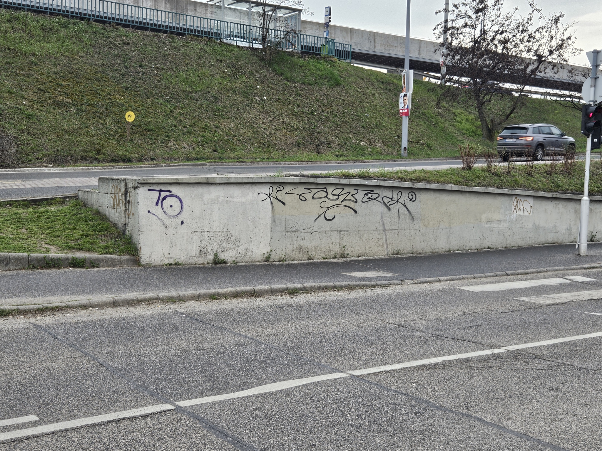 A Rákóczi hídnál, a MÜPA parkoló mellett van néhány graffiti.