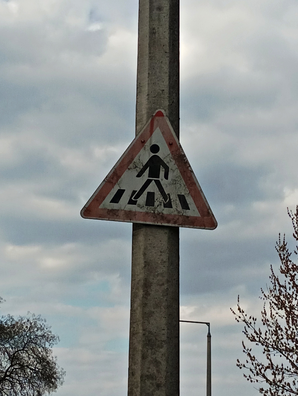 Kérem, cseréljék a táblát. (Szabadkikötő HÉV állomásnál levő gyalogátkelő előtt)