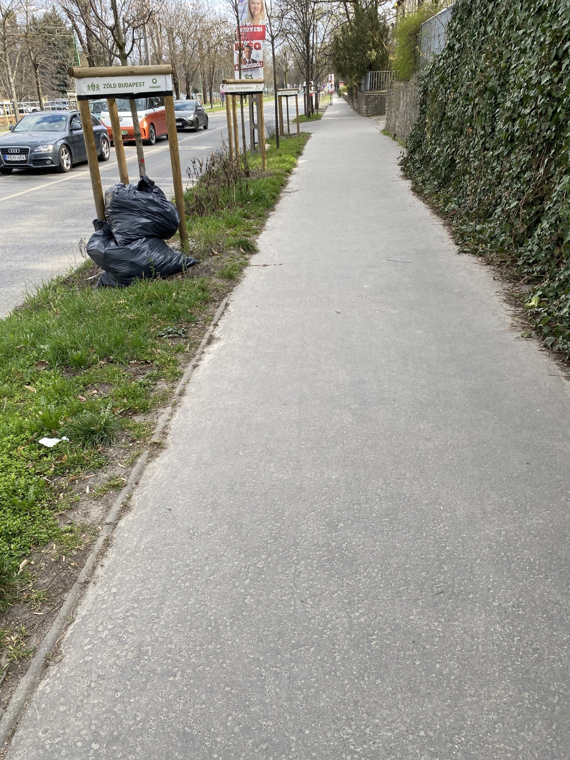 Illegálisan lerakott hulladék a Hűvösvölgyi út mentén, a Kelemen László utcai buszmegállóval szemben. Kérem szíves intézkedésüket.