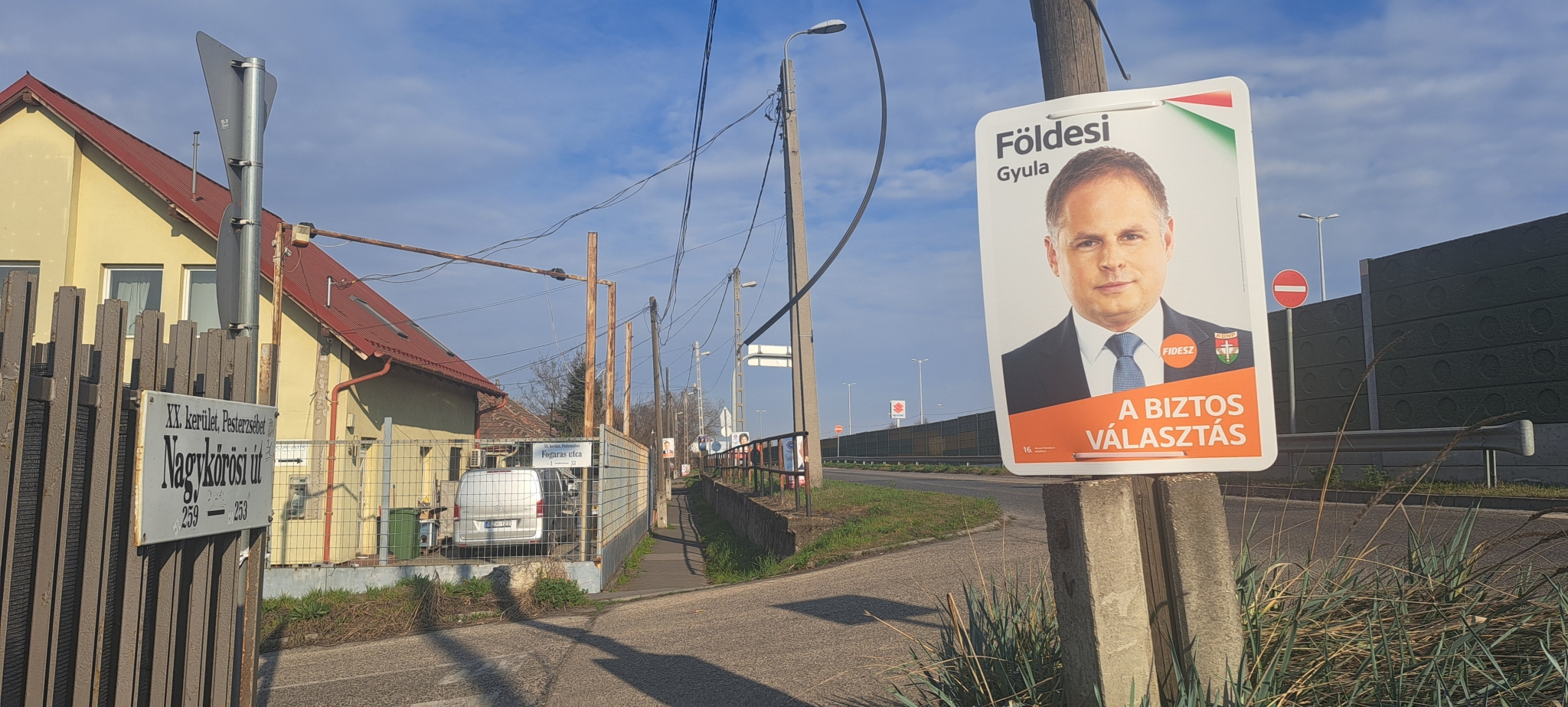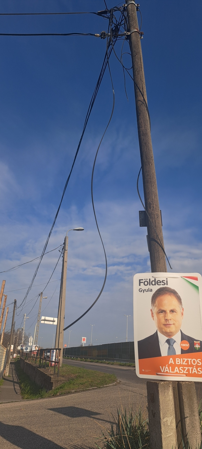 A XX.ker. Nagykőrösi út 253.-nál a villanyoszlopról vezeték lóg fejmagasságban...képen csatolom a pontos helyet.