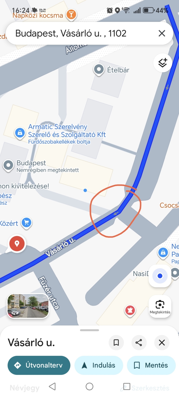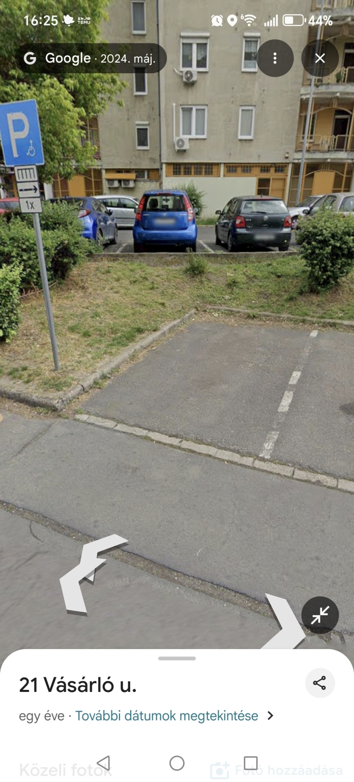 A X. kerületi Vásárló utcában található mozgáskorlátozott várakozóhely kialakítása nem felel meg az akadálymentesítési szabályoknak (OTÉK előírások).