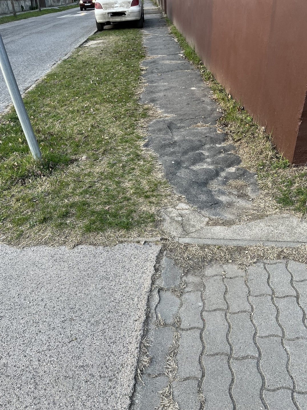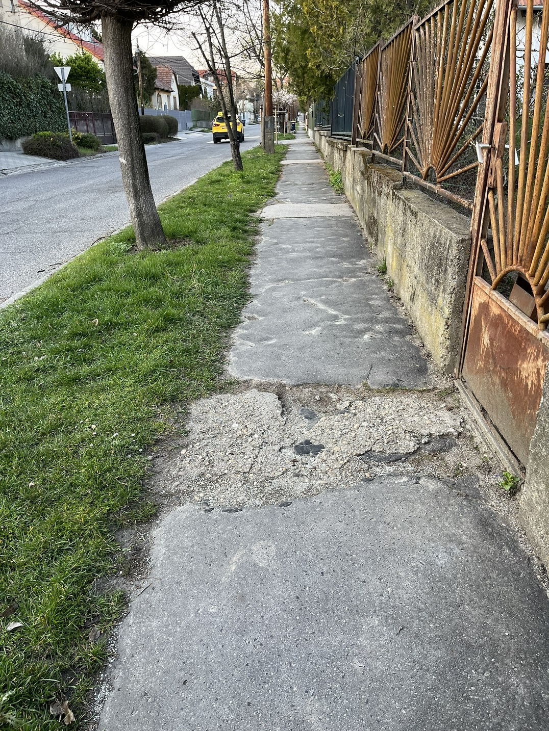 Töredezett, botlásveszélyes járda