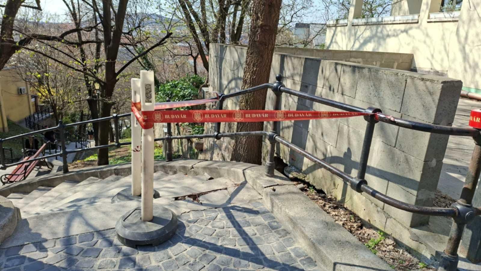 A sérült lépcsőt elkerítettük, a közeljövőben helyreállítjuk.