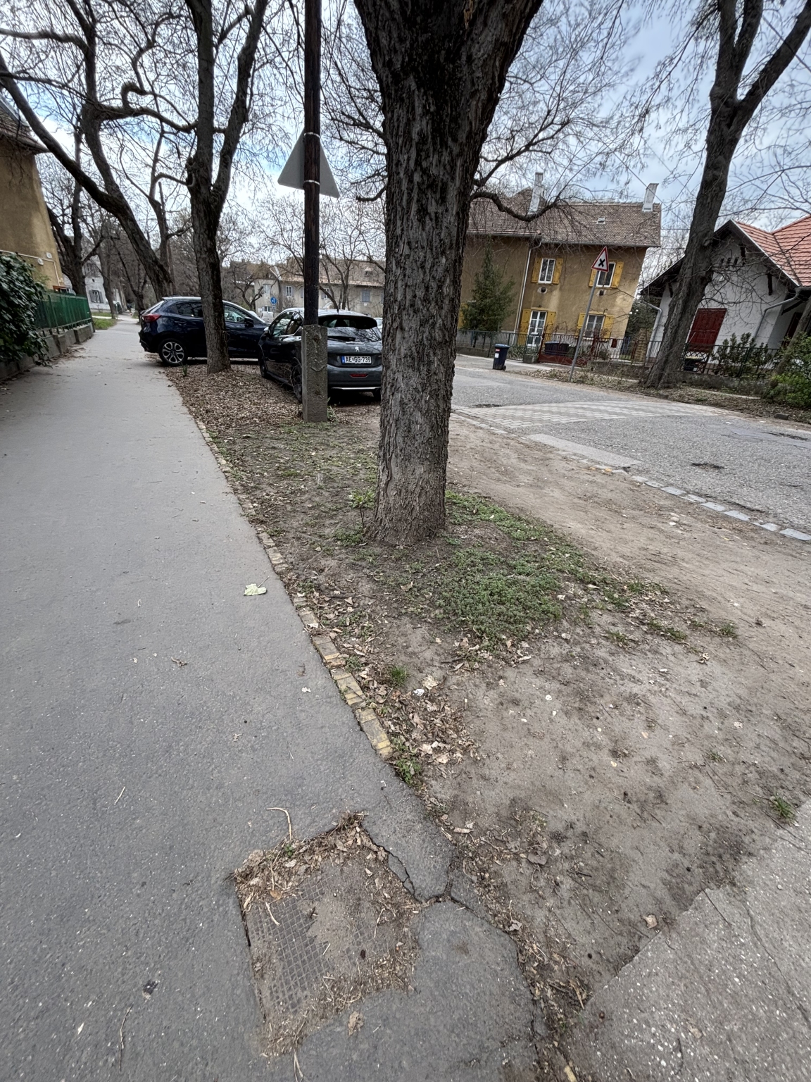 A képen látható gázelzáró körül a járda már be van repedezve, a gázelzáró szekrény be van süllyedve és eső esetén a víz megáll körülötte és belefolyik.