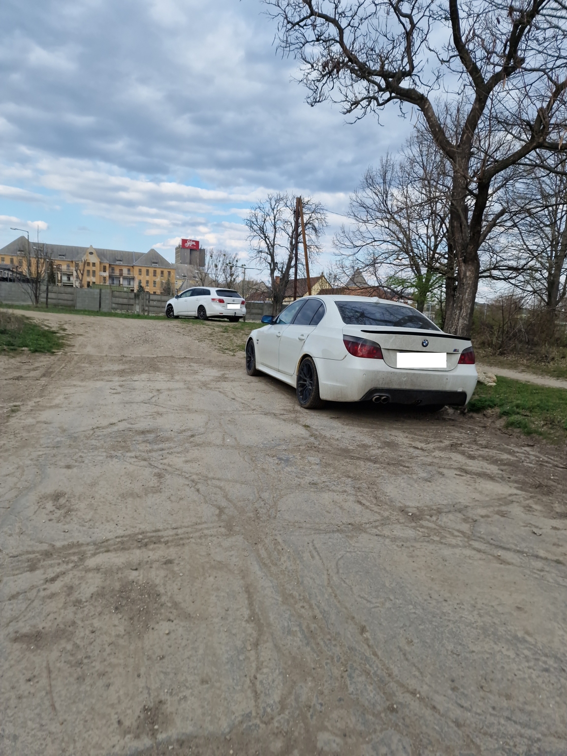 A Harasztos út zsákutcájában várakozik egy 2006-os fehér BMW 520D 560L, a műszakija 2026.03.11-ig volt érvényes.